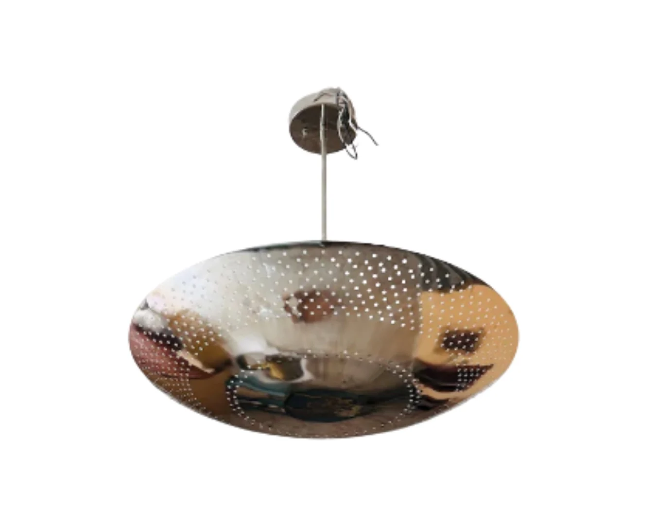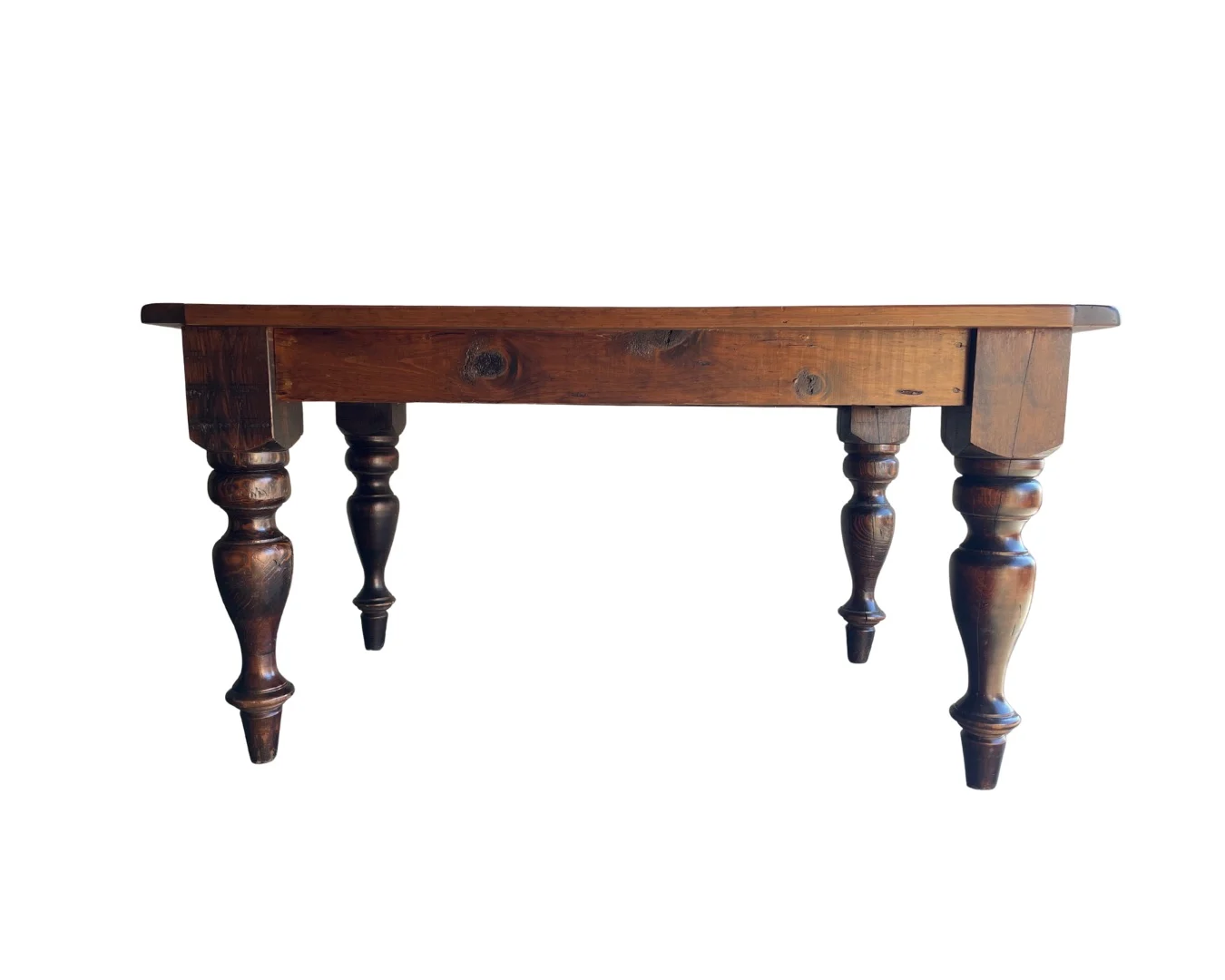 Vintage Solid Wood Farmhouse Table | Handcrafted Perforated Flush Mount Chandelier | Reverie Chandelier