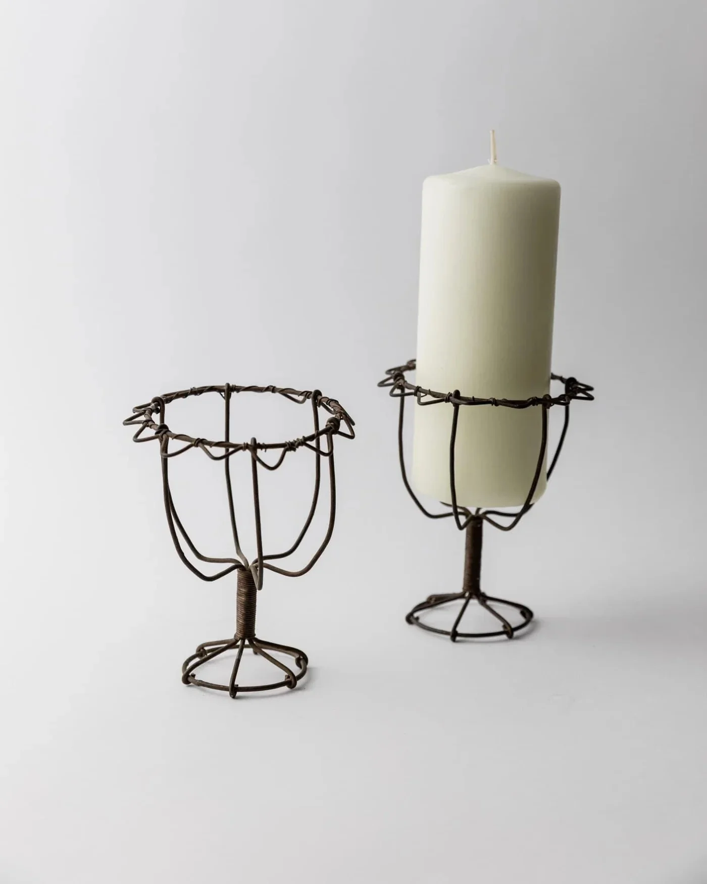 Jolene Wall Lamp | Antique 1850s Iron Wire Candleholder (Set of 2) | Lydion Blanco Hueso