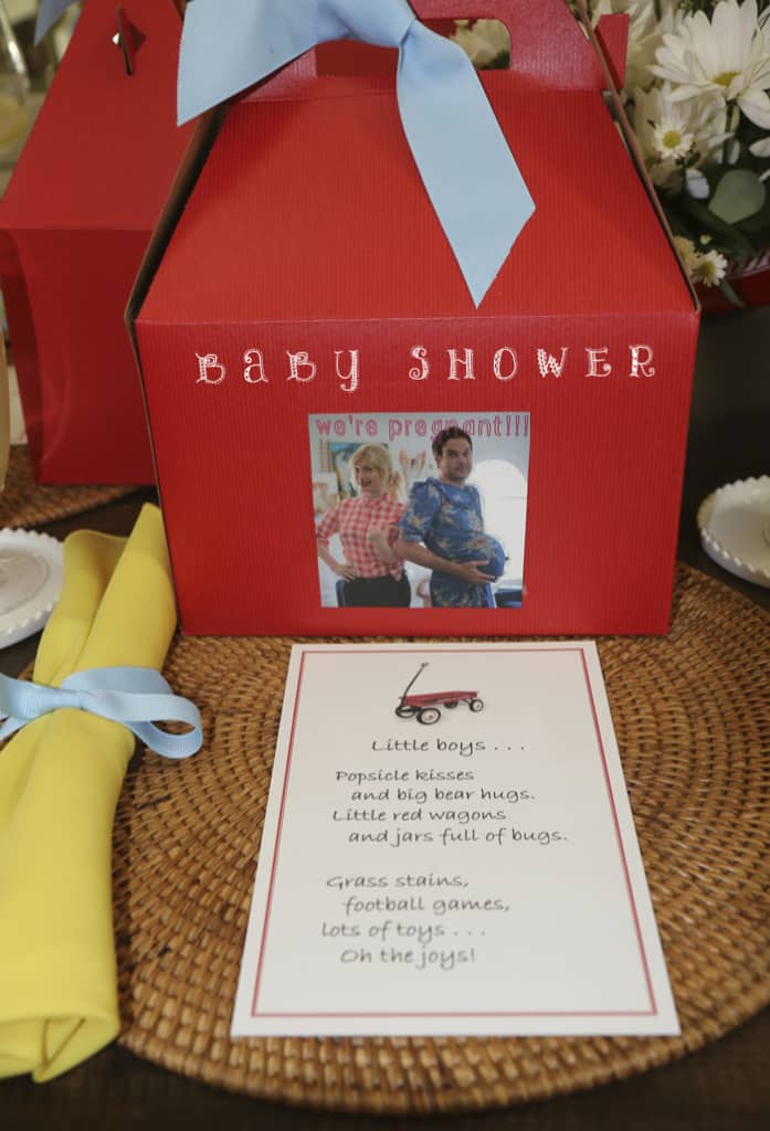 They chose a Little Red Wagon theme – which was totally adorable and yet timeless – and perfect for my little Charlie who will undoubtedly play in that wagon for years and years. They made lunch boxes full of curried chicken (which was a craving, probably because it has mayonaise and sugar in it, so delicious), white wine for the ladies and flowers styled in red wagon vases. It felt casual and easy, which was so nice and way more my speed, because sometimes big baby showers can feel overwhelming and formal. But not this one. It was simple and classy, but still young and fun.