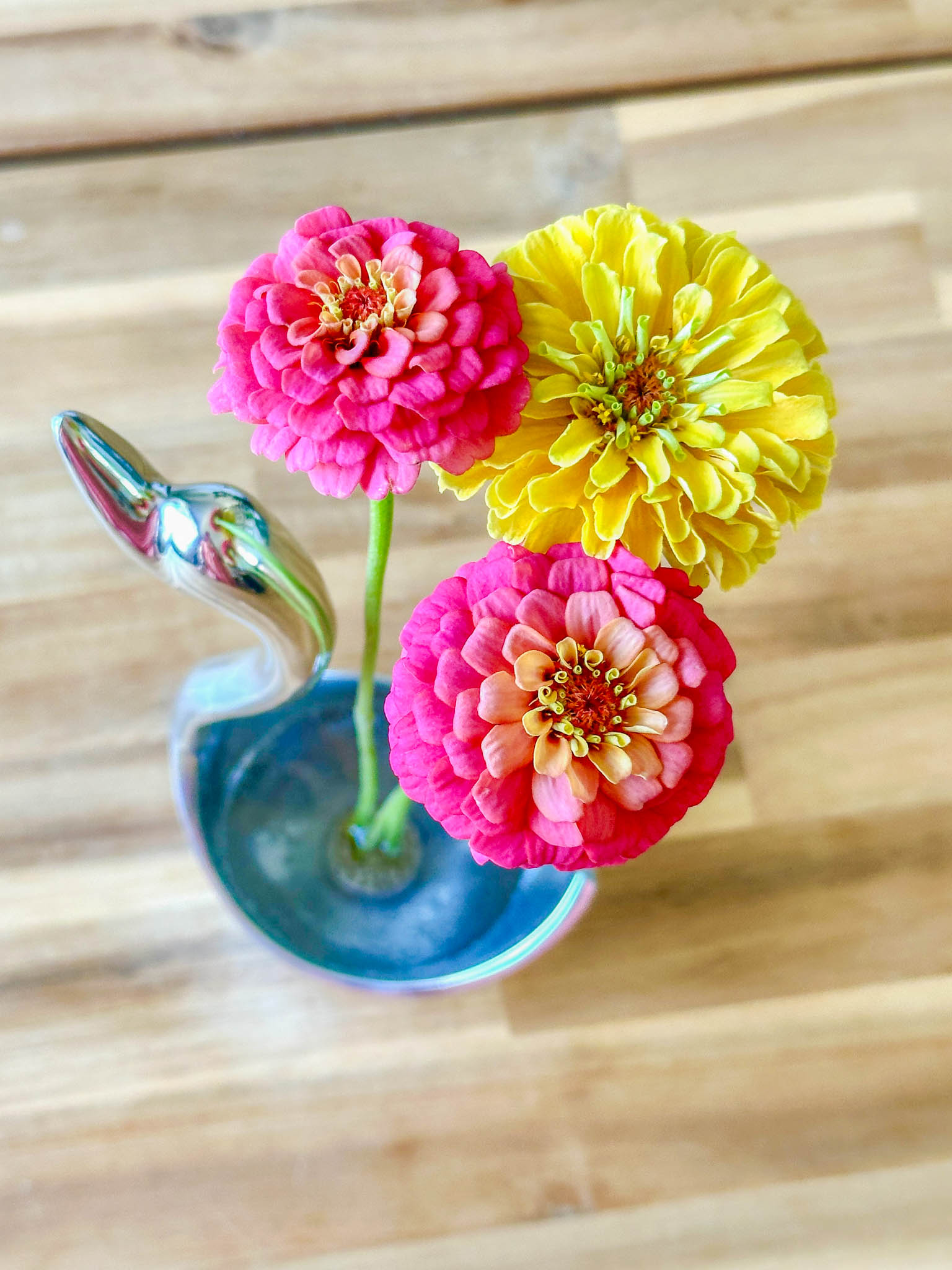 I’ve written about my love for a little whimsy in our homes, and this fits squarely into that narrative, but remember: A little goes a long way. Try a single vintage brass swan planter. Or a ceramic swan pitcher. Feeling frisky? Put a small swan figurine on a bookshelf. Let’s look at some examples.