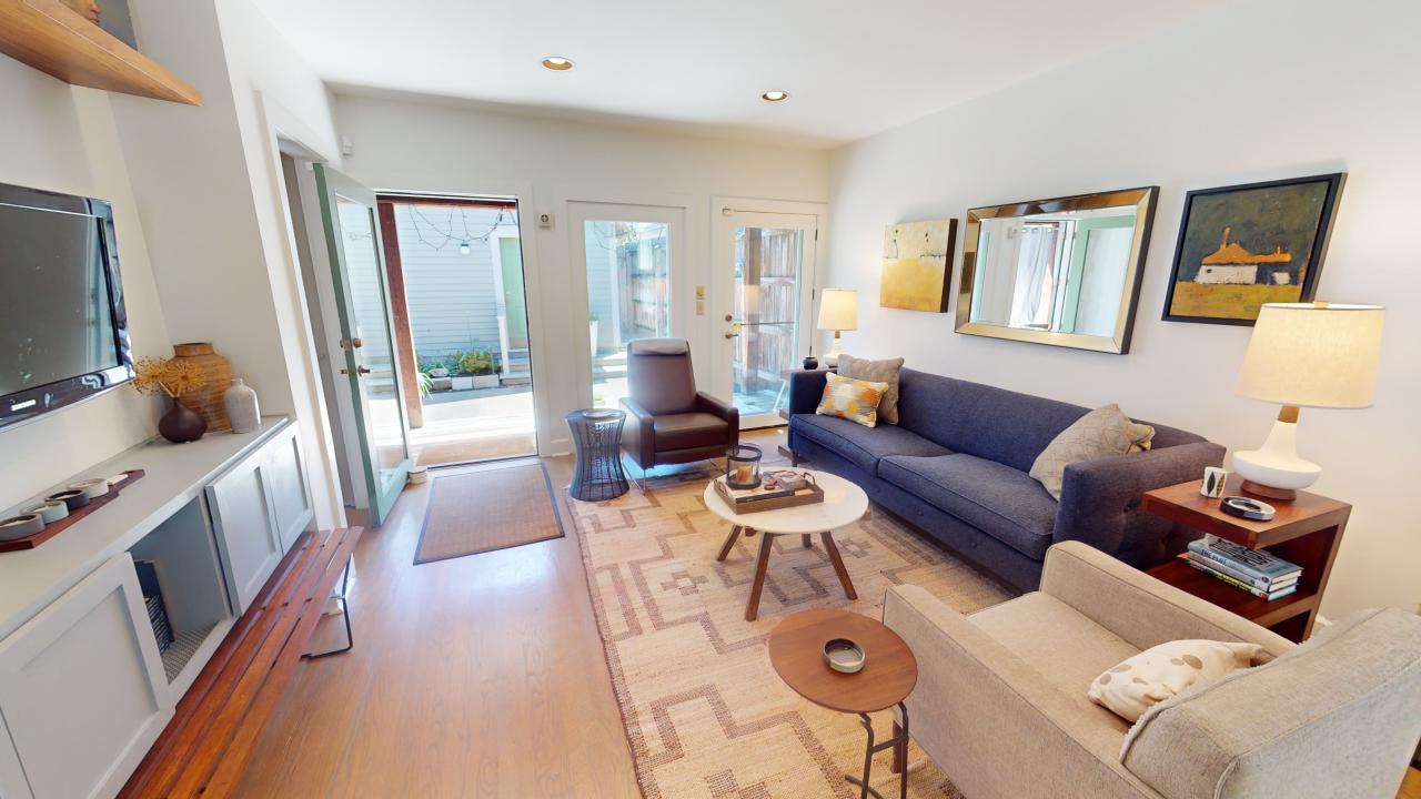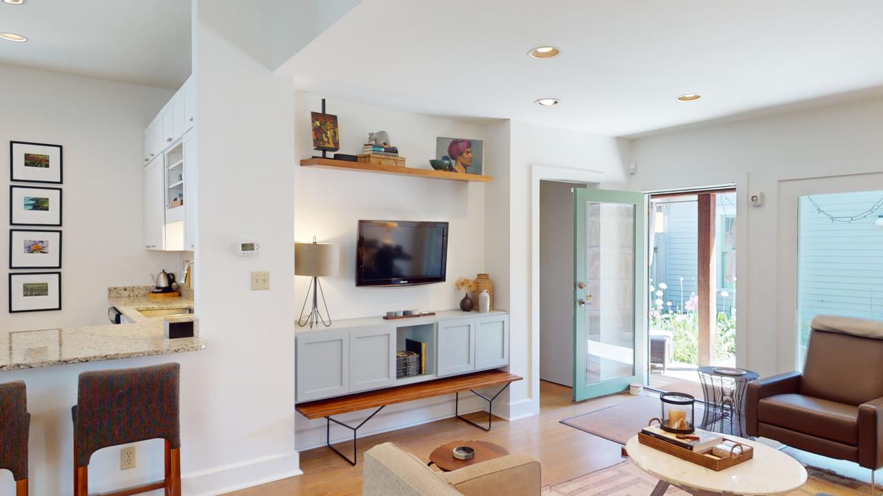 Don’t automatically get the smallest-sized furniture for a small space. It may seem counterintuitive, but typically, choosing “normal-sized” furniture pieces will make your space feel intentional and not truncated. Of course, there’s a balance, right? For my current living room sofa, I chose the 84″ size. There was a 72″, but I felt it would have looked too small. Would I have more “space” with those 12″? Yes. But not in a good way. And had I chosen a big sectional, that clearly would have been too much. This piece of advice was also something that Nate Berkus said in the video I saw a couple of years ago, so if you don’t trust me, trust Nate.