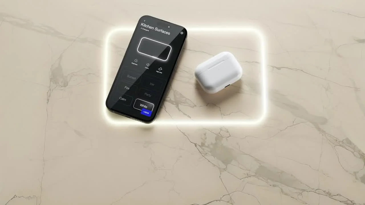Now, imagine that wireless charging technology has been seamlessly integrated into your kitchen countertops, your bathroom vanity, or even your nightstand. There’s a lot of magical technology at play here – everything from integrated copper cables to a proprietary light that will indicate where you can charge your devices – and it’ll even optimize charging of your devices, to boot.