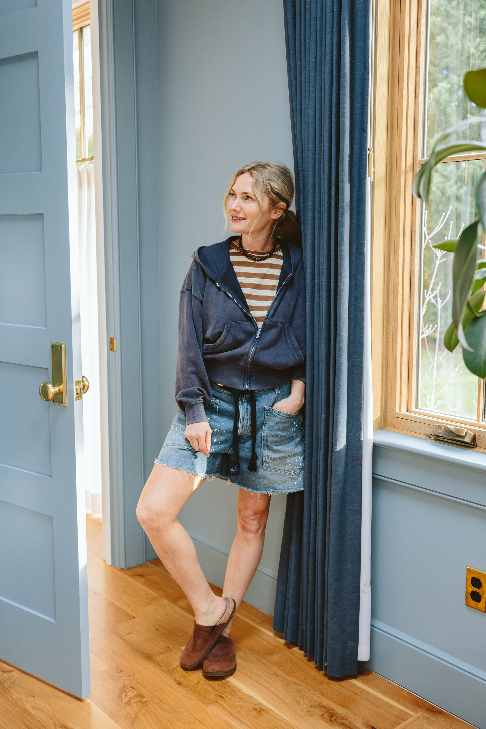 Admittedly, this is NOT a good outfit. But it was the end of the day, and I really wanted to show you all of these elements, just not together. The mules are LL Bean for Free People, and they are absolutely heavenly to wear. So comfy, they look so cute with socks. Giving Birkenstock but WAYYYYYY more comfortable (I think I’m the only person who doesn’t find Birks comfy). The shorts are awesome, but size down (these are too big on me) with great paint splatter and holes that will likely inspire your father-in-law to ask if you need to borrow money to buy real clothes (every time!). Jess has these, too, and wore them in Palm Springs in a non-splattered option.