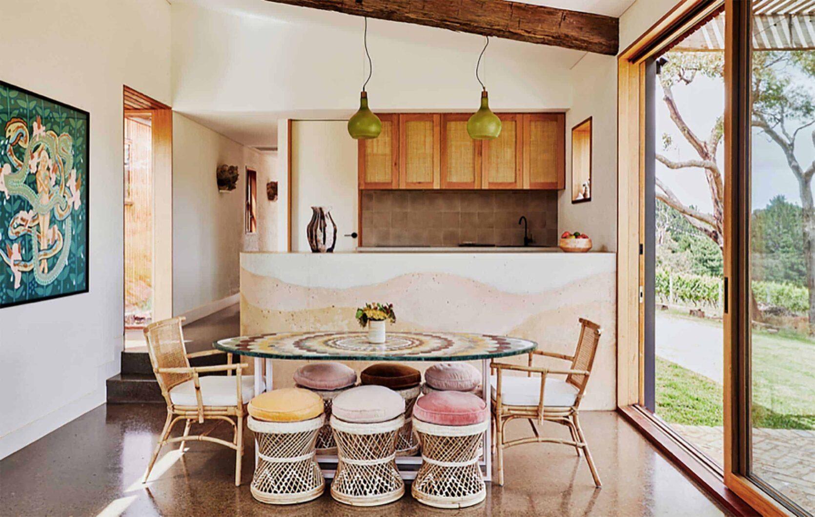 First and foremost, we must talk about today’s featured home tour, courtesy of our favorite Australian interior design website. That dining room up there is straight out of our rattan-loving dreams (and do we even have to mention those double pendants?? they are TOO good).