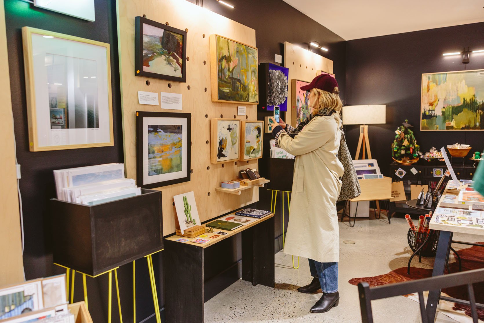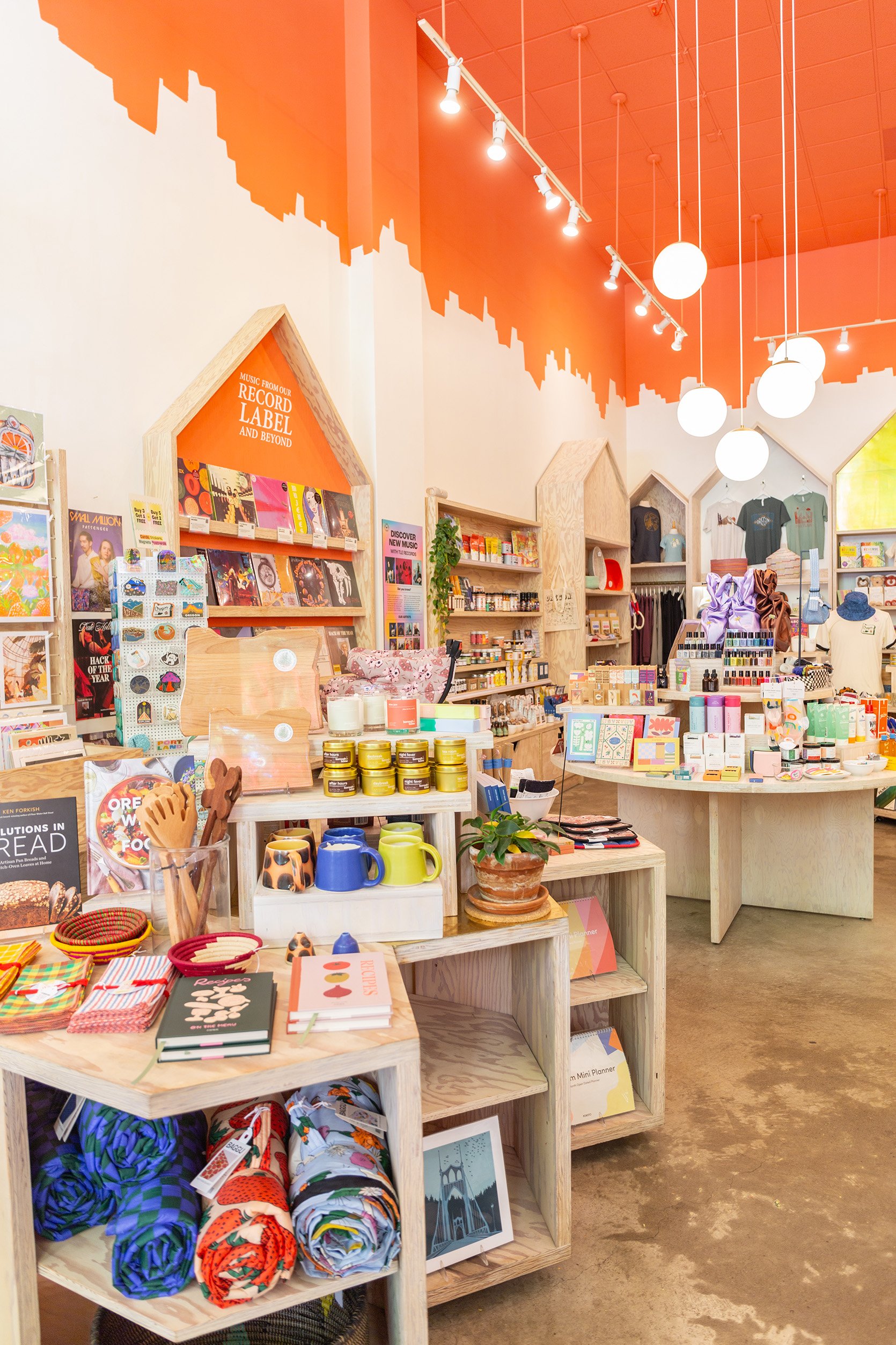 Flutter: A maximalist gift shop full of great finds. A fun atmosphere with art, books, clothing, home goods, tarot decks, and more.