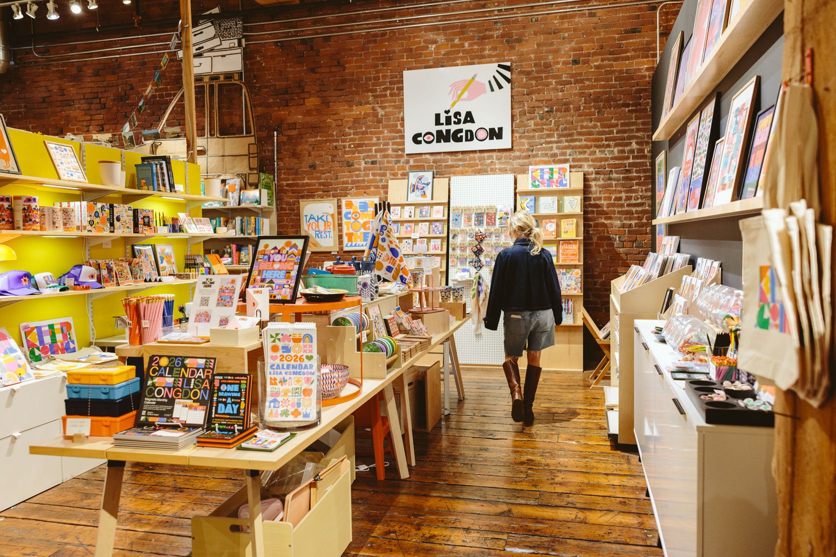 Lisa Congdon is a famous Portland illustrator and graphic designer who sells a lot of her wares there. I love her playful and colorful vibe (so does Elliot).