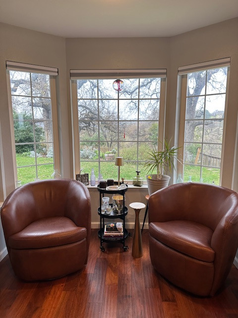 Gosh, is this so stinking charming. With or without the round, deeply-inset window, creating a window seat and then adding a small pedestal table and another seating option feels like the only way I want to fill a corner in bedrooms and expansive living rooms from now on.