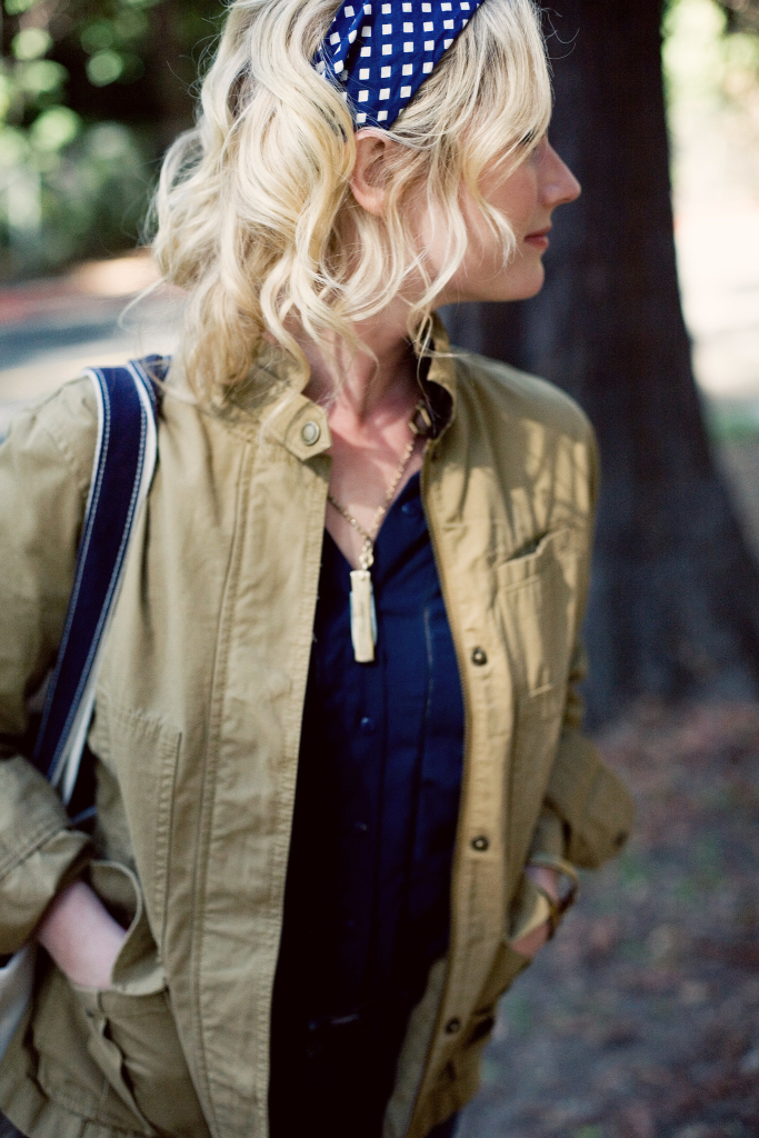 Whatcha looking at with a smile and a Chambray dress on, there Emily? OH, just life. And yes i am wearing two very functional necklaces. One is a vintage watch-fob that has a knife on it. And the other is vintage glasses that are attached as a necklace, so you can be all, ‘hey, robber, even though its really bright outside and the sun is still in my eyes i can see you and then stab you’. Mace is over-rated.