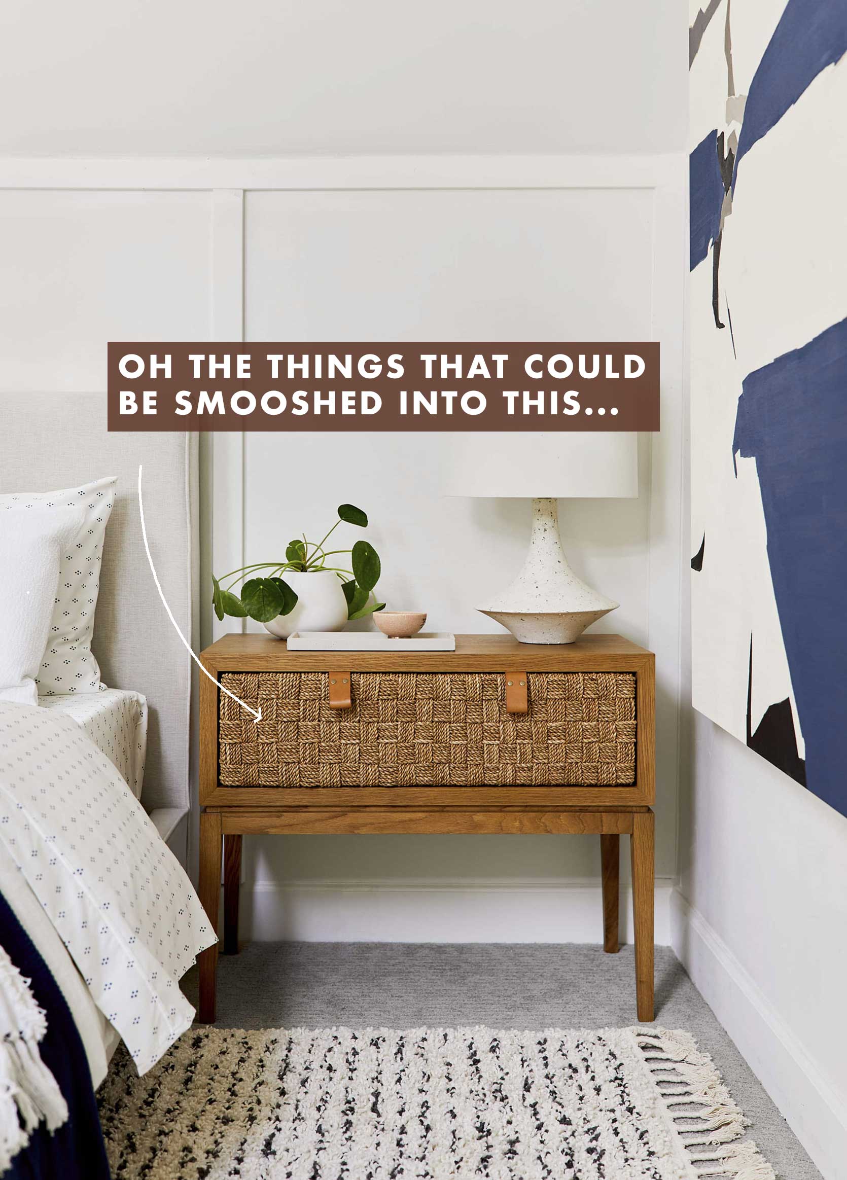 At this point, I sound like a broken record about this texture stuff. But clearly, I cannot say it enough. Those early years, when they can’t wipe their hands properly or their curiosity about how the world (and their slime) works is at an all-time high, is not when you should be investing in a gorgeous piece like the nightstand in the above photo.