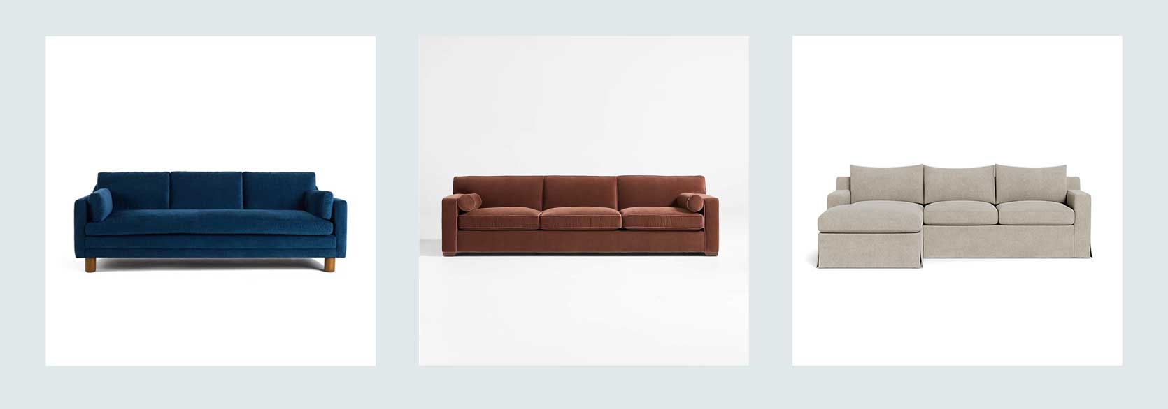 From Left: Oscar Sofa | Raffiné Sofa by Athena Calderone | Sloan Slipcovered Chaise Sectional