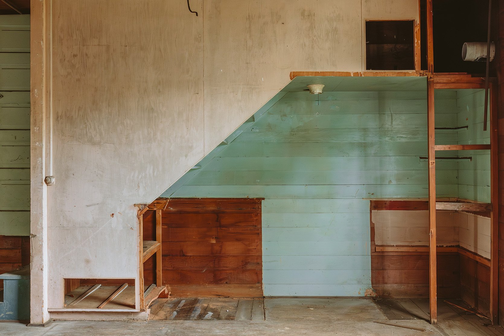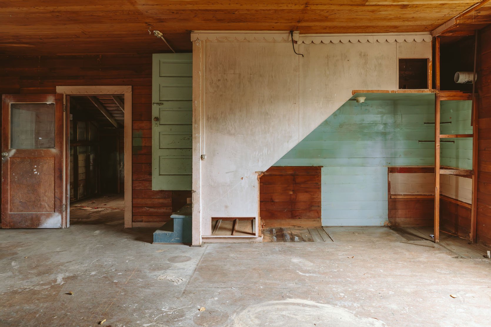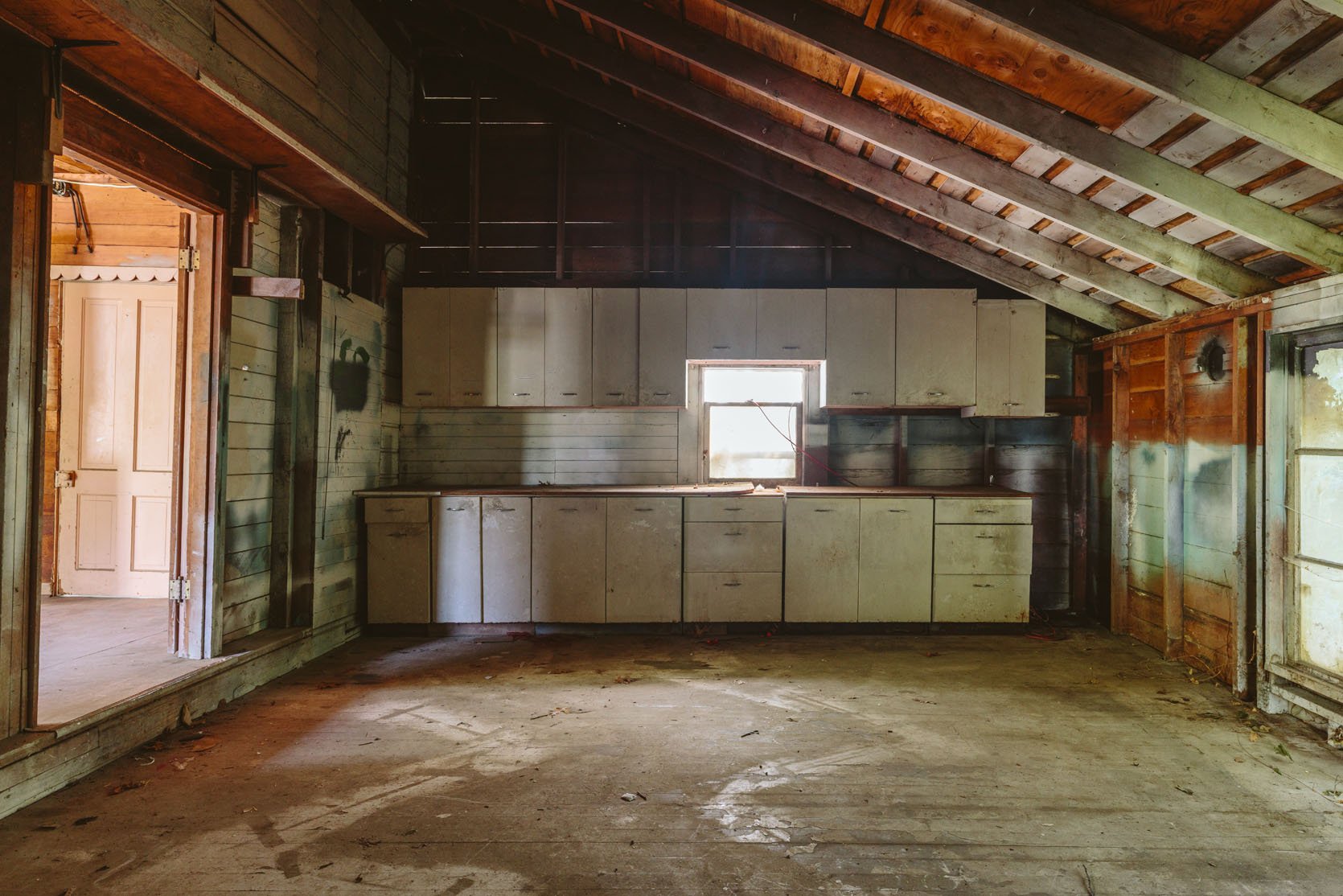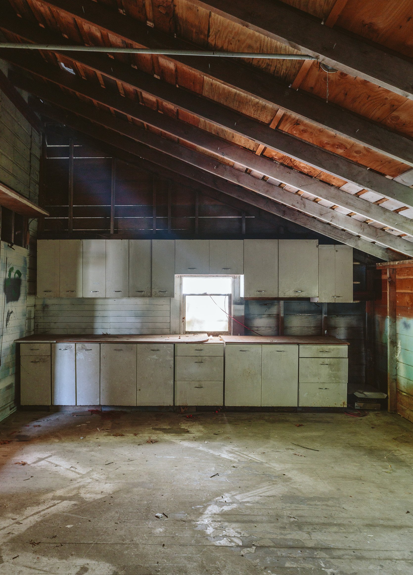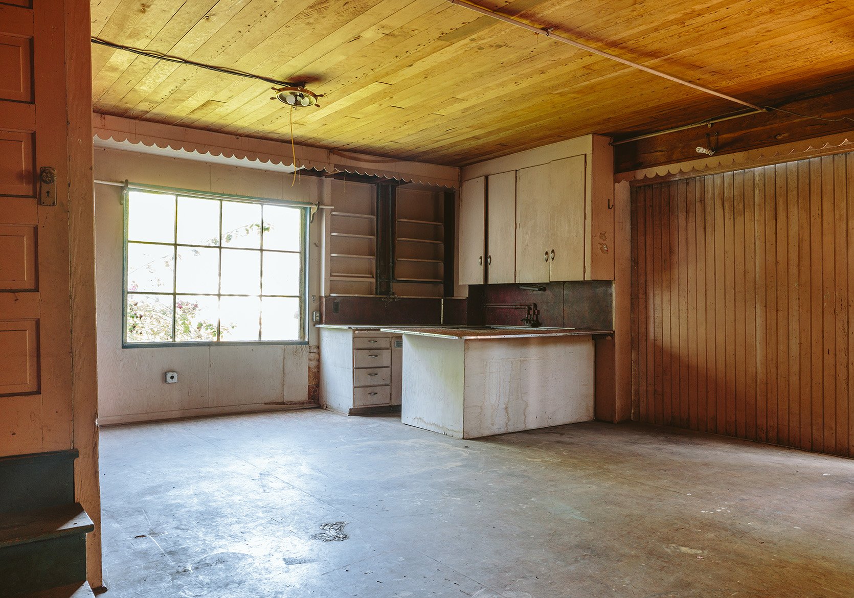 This room had all the aluminum cabinetry from the 40s or 50s, not in the best shape. They were actually super easy to remove and really lightweight. It’s a really big room with high ceilings and walls/ceilings that need to be repaired (and done properly).