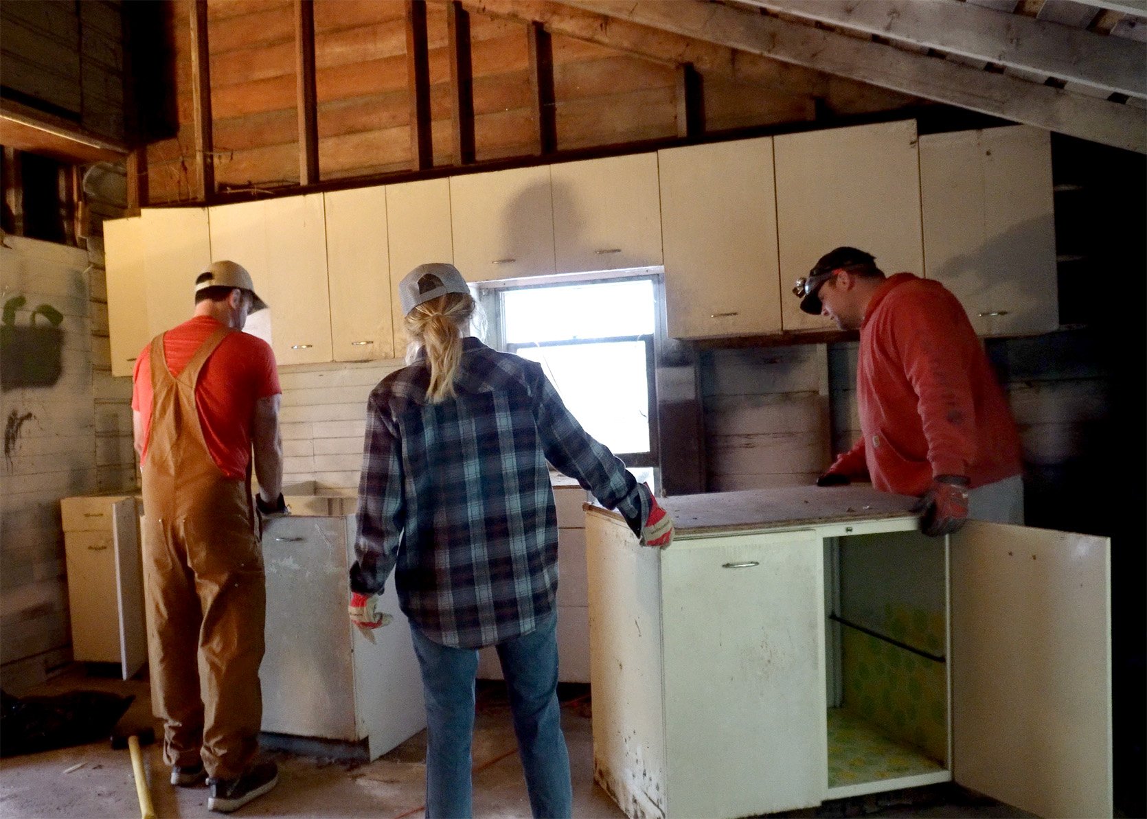 We were able to pull out the cabinets, and Ken or Brian could carry them on their own – VERY strong men, these two. These were a lot easier to remove than the wood cabinets in the other room, which were solid.