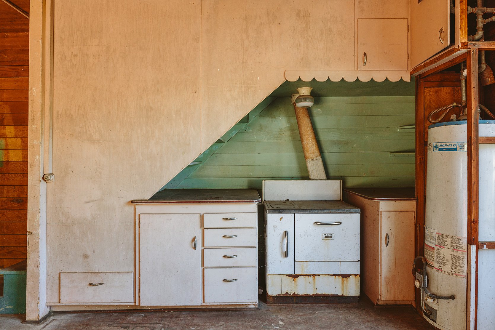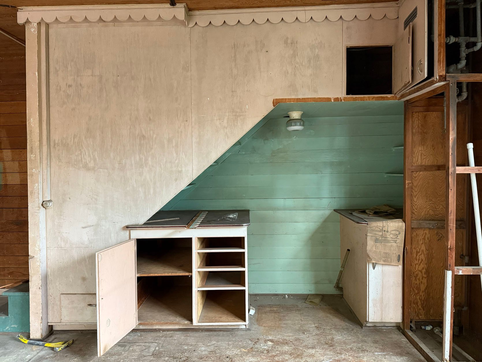 The area under the stairs had the vintage wood-burning cooking stove, cabinetry, and old hot water heater. Thank god for Ken and Brian – these things were heavy and we needed some serious muscle.