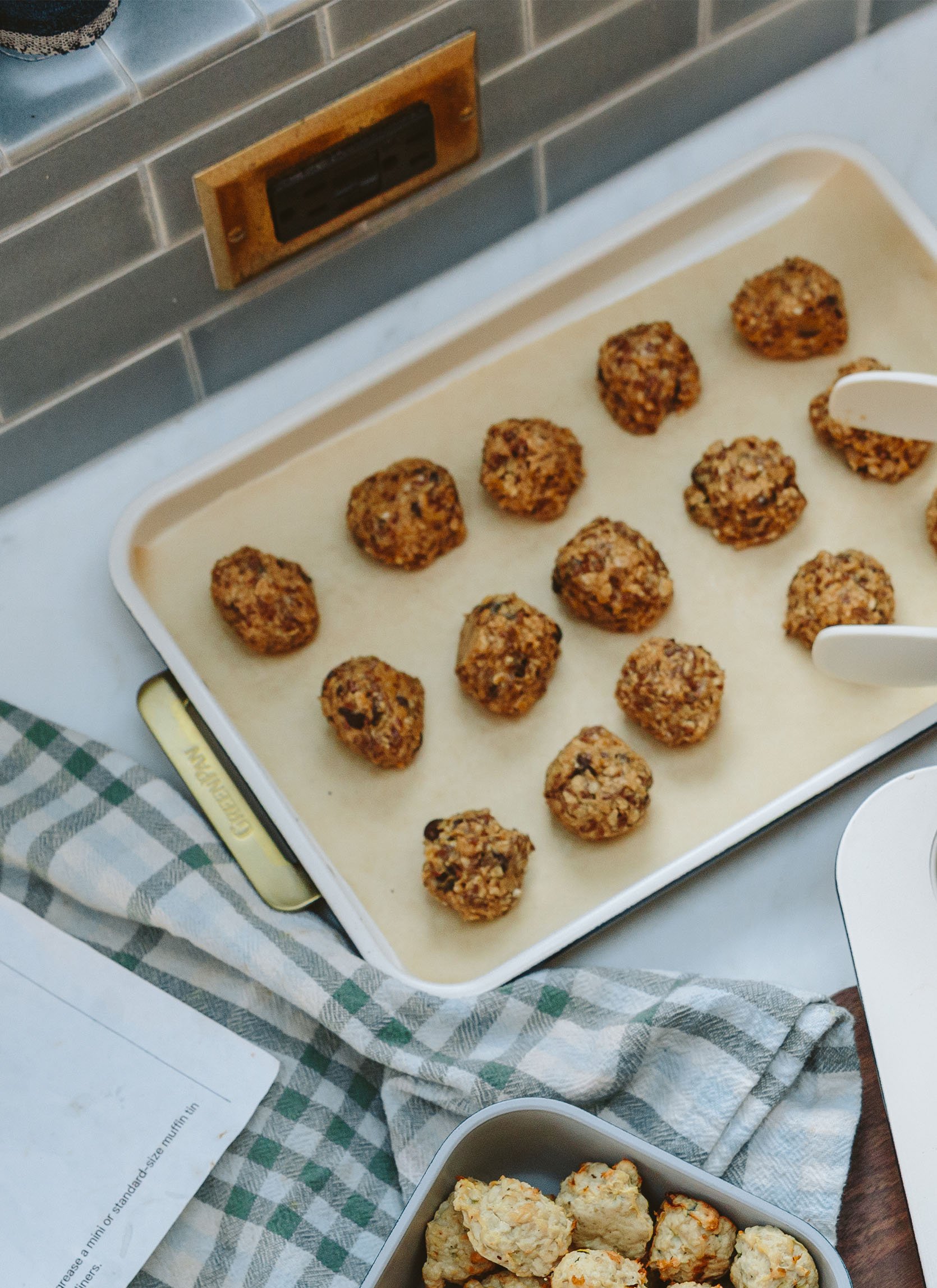 I JUST started making these, and my goodness, they are the best protein snack hack for the whole family. I’ll pop no less than like 8 in my mouth a day, working from home. We have a lot of growing 12-year-old boys who come over, and they devour these guys. And they have no gluten, dairy, or sugar. Just turkey, zucchini, and herbs/spices. We doubled the recipe one week (made 96 of them, which was aggressive), and I found that adding way more seasoning than the recipe calls for helps a lot. I used my Trader Joe’s ranch flavoring (probably 2 tablespoons), and it added so much more flavor (and made it taste a little Mediterranean). Big fan. Original recipe HERE (just add more salt and seasoning if you aren’t adding to another recipe, imho).