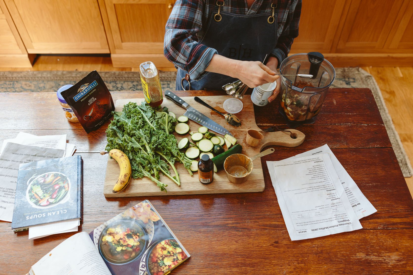 I’m not a baker AT ALL – too scientific, too specific, too easy to mess up. But these muffins only require you to dump all of the ingredients into your blender, blend, and then bake in muffin tins. We’ve made these probably 10 times now, and I modify the veggies (you can sub spinach for kale or add protein powder easily). At times they’ve looked more green (which my kids, of course, have an adverse reaction to), and at times I’ve put more cocoa powder to ensure they are sweeter.