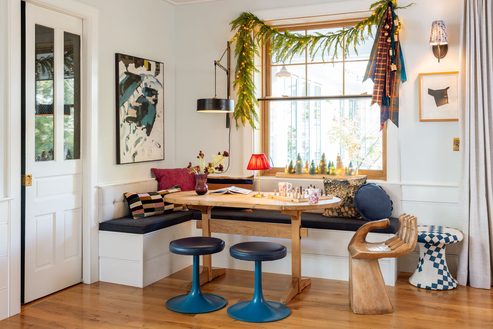 Around 3 pm, it got so glowy and cozy (hours later, it’s even better – but so hard to shoot!). It’s busy and layered, for sure (which is why we kept the kitchen styling so simple), but when you are in the room, it feels so cozy, warm, casual, and inviting. Oscar is modeling our new Pendleton dog beds from Chewy (which are admittedly too big – I bought two “larges,” which I’m now using in our family room as floor pillows for Survivor nights in front of the fire/TV, and then I ordered mediums instead to go in here, which hadn’t arrived in time). I love the color palette of the plaid in this room, though.
