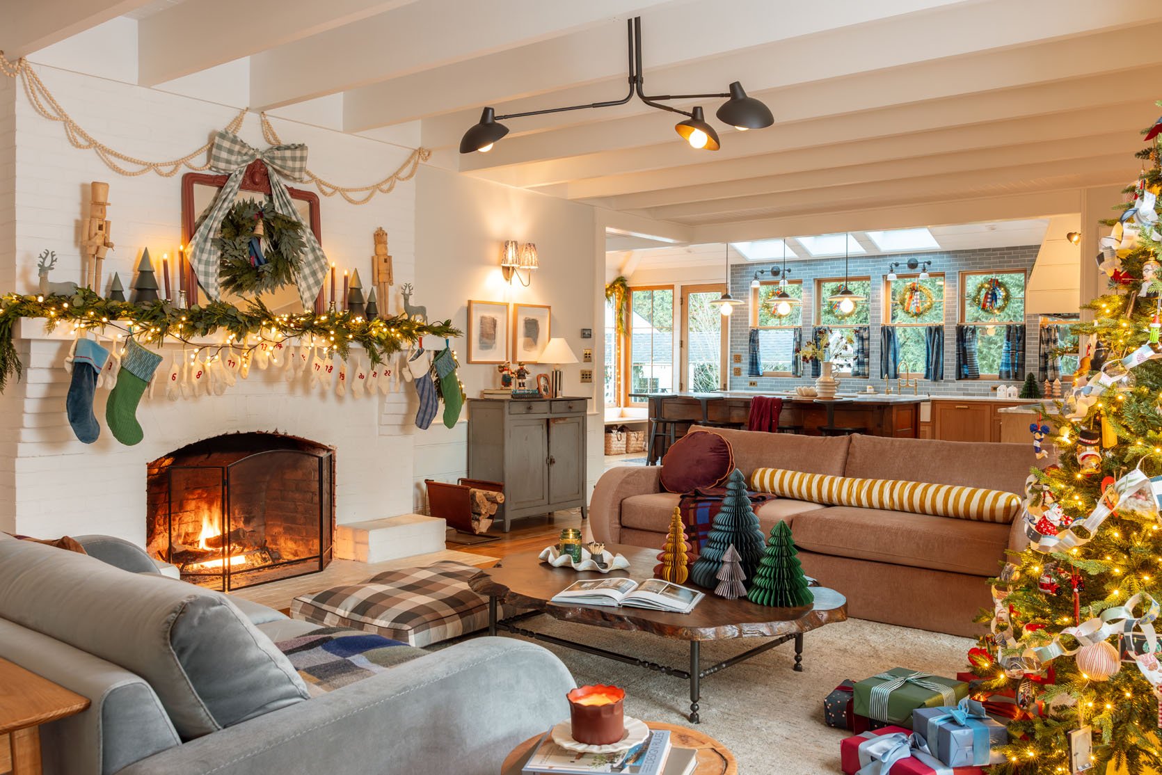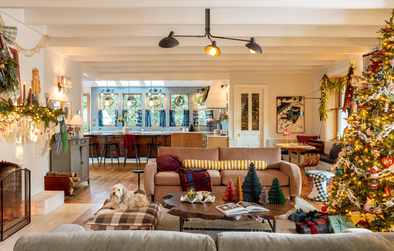 I LOVE this shot. The blue Barb is Barbing, and it feels inviting and fun, like these people want you to have a good time (very accurate). We’ve never had an adults-only party; we are a frat house for families with young kids, so going more whimsical feels right. And while I love a curated tree, I love our family tree more, with each ornament telling a story. “Henderson Ornament night” is where I’m shamelessly at “peak nerd,” and my kids LOVE it too, despite likely wanting to say it’s cringe:)