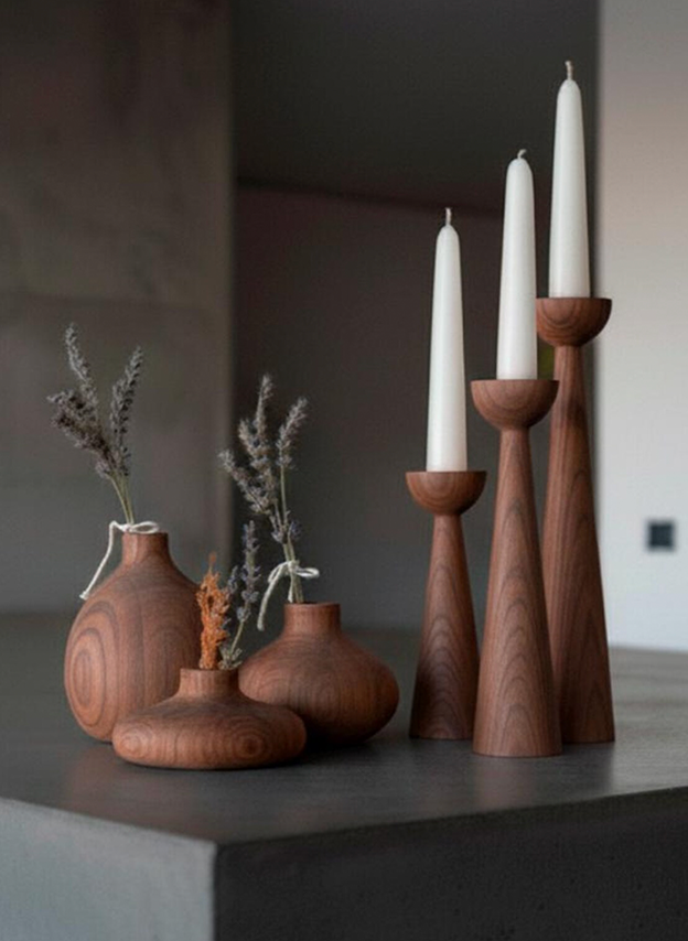 Wooden Candle Holder Vase Set: A beautiful classic set that could be divided up into two or given together as one gift.