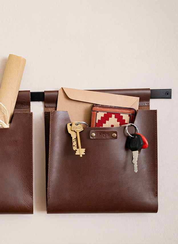 Leather Wall Pocket Organizer: I love this for a space that needs to utilize vertical wall space for storage.