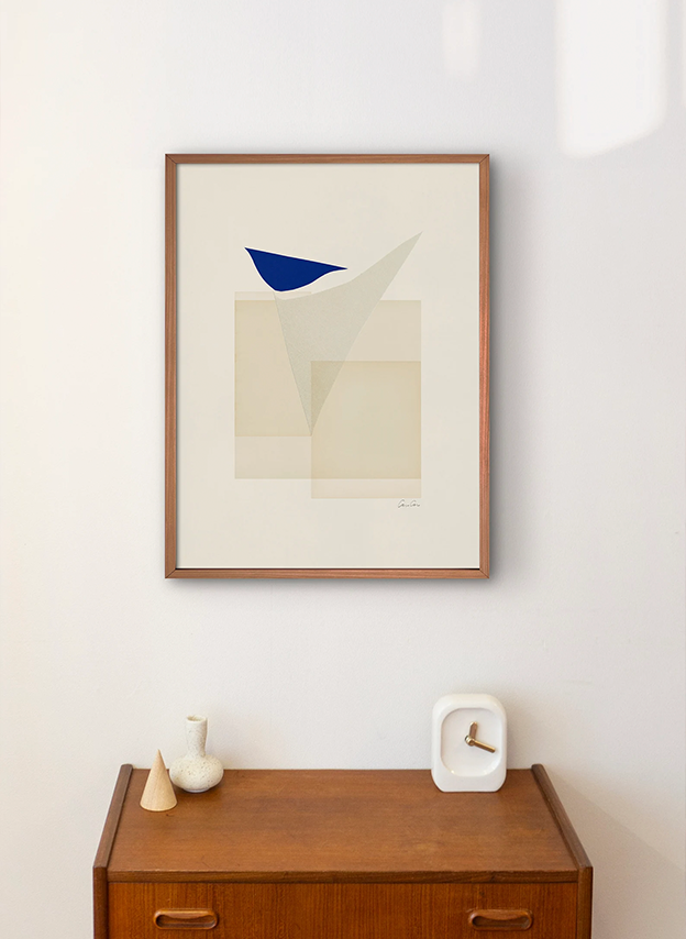 Minimalist Bird Art Print: The color palette is soft with that pop of blue – feels both sophisticated and playful.