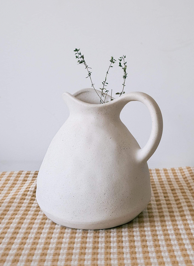 Ceramic Jug Vase: Do not sleep on jugs for vases – the handle adds to the shape of the overall flower arrangement.