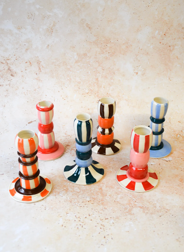 Striped Candlestick Holders: How playful, whimsical, and fun. Design forward for those who love color and pattern.