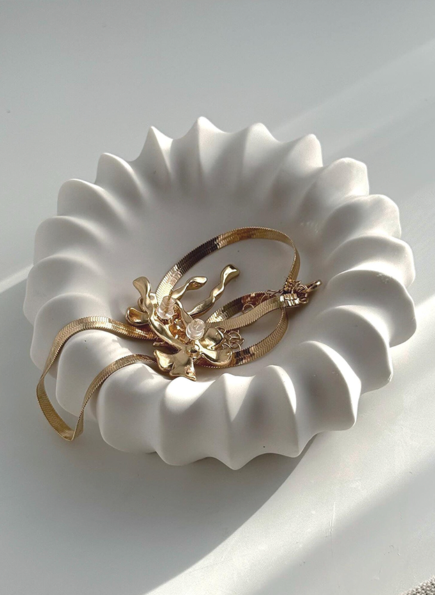 Handkerchief Ceramic Bowl: I love how this bowl catches the light (it dances around) on top of a stack of books. Comes in a creamy white as well (and can hold nuts, matches, remotes – anything!)