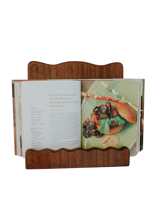 Scalloped Wood Cookbook Stand: I’m still analog in the kitchen (I hate looking at my phone or laptop and having to keep unlocking the page). How pretty is this???