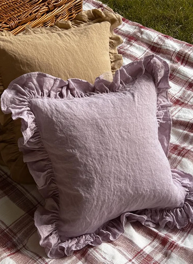 Ruffled Linen Pillowcase: Washed linen in the prettiest colors (and goes “Granny” in a not too fussy way).