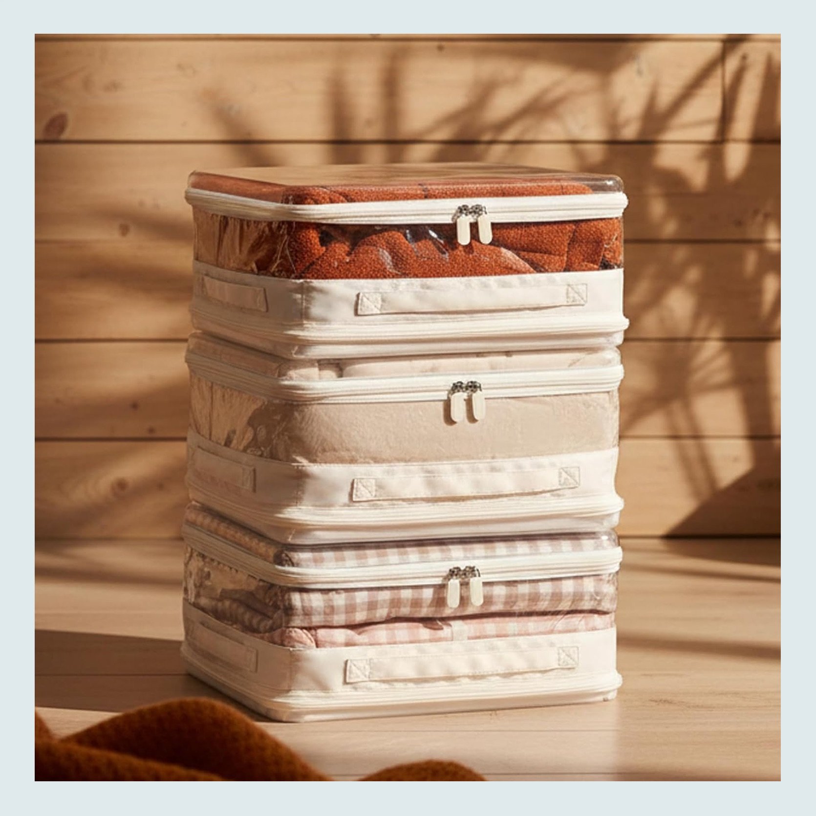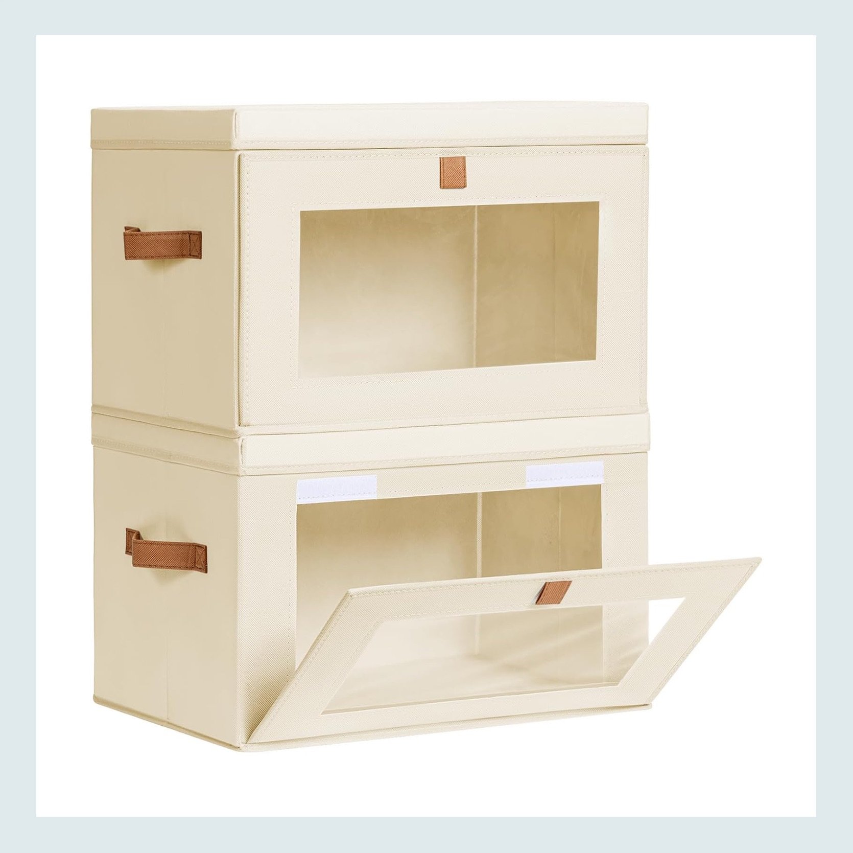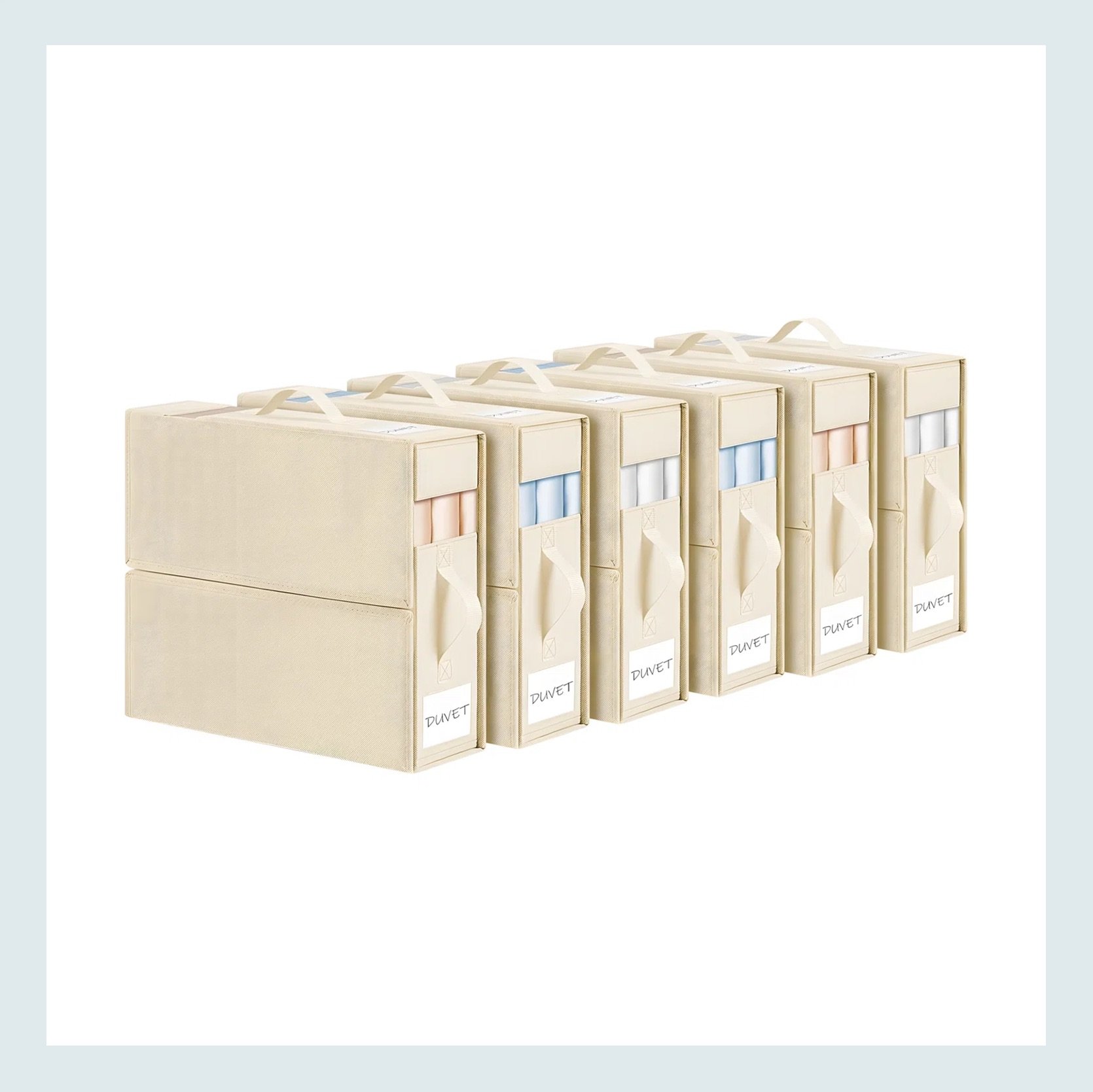 More options! These expandable blanket storage bags are a mix of the two products above. They can be for just sheets, but can also expand larger for your bulkier linens. The more structured bins are for clothes. It’s so important to be able to see what you have (especially if they are sweaters you haven’t worn in a year). These bins are chic, clean, and seemingly not annoying to use!