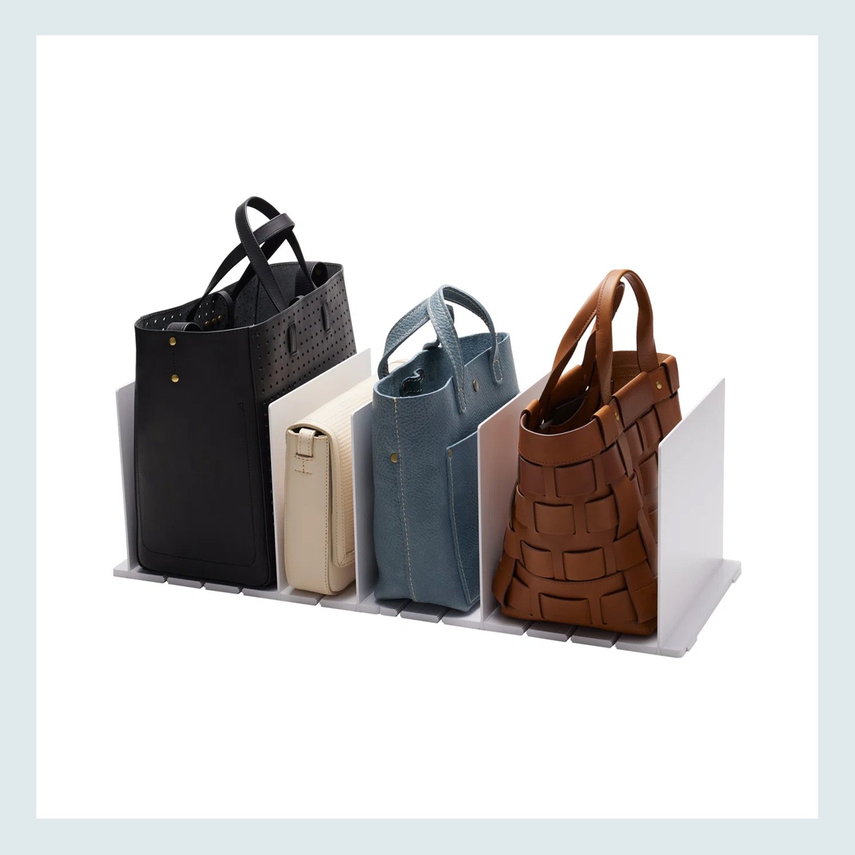 If you don’t have space on the back of your door or on a shelf with a divider, this purse hanger is a great option. And if you are a shoe organizer box person (also my dream to be one), I love this chic little one. Should organization products be beautiful too if that’s what you want??