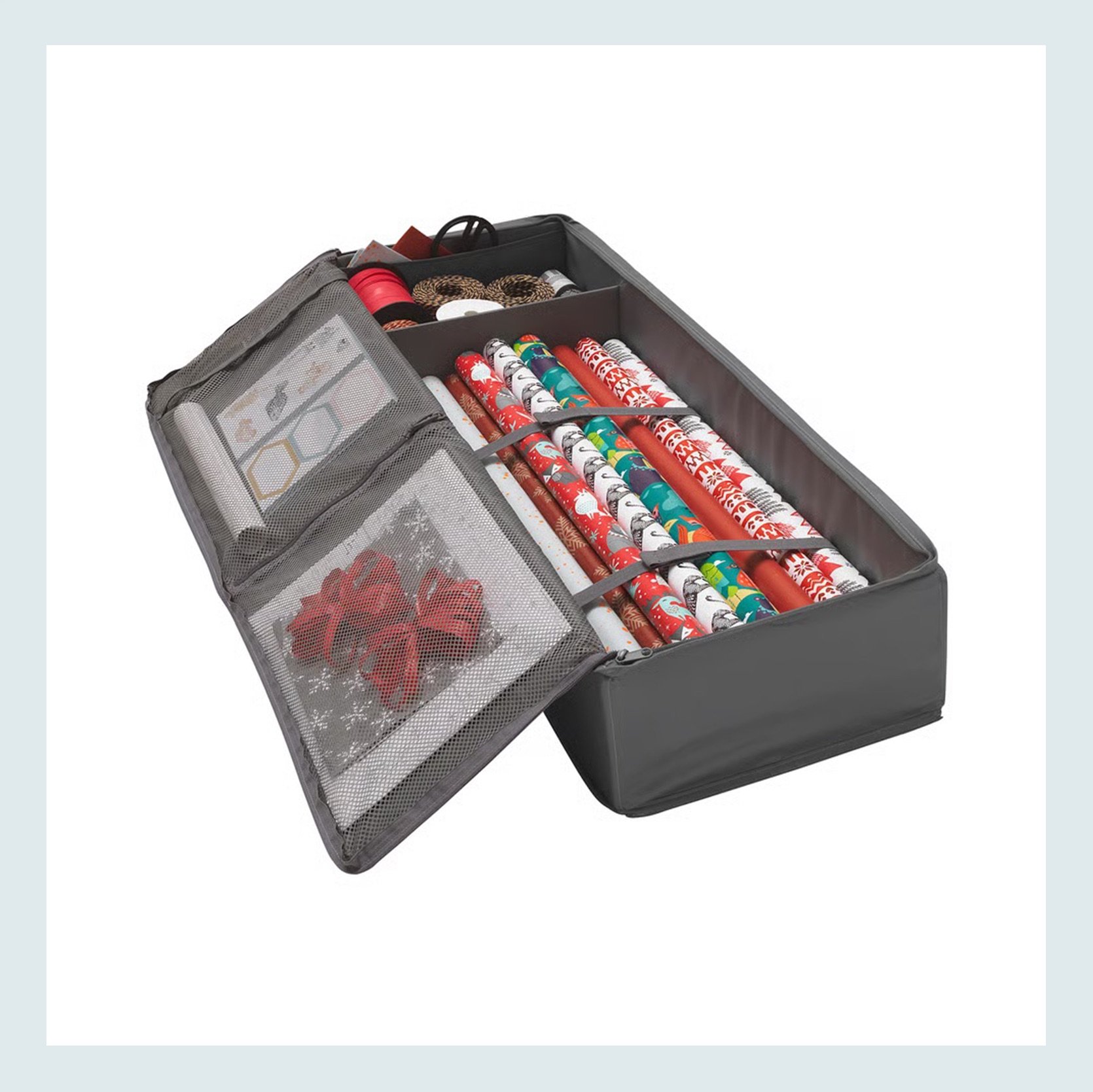 I love a good gift wrapping storage option, and this solid, simple one looks great, is from IKEA (also great), and is under $15 (the best). I promise that the feeling of knowing where all of your gift wrapping supplies are and having them organized is thrilling.