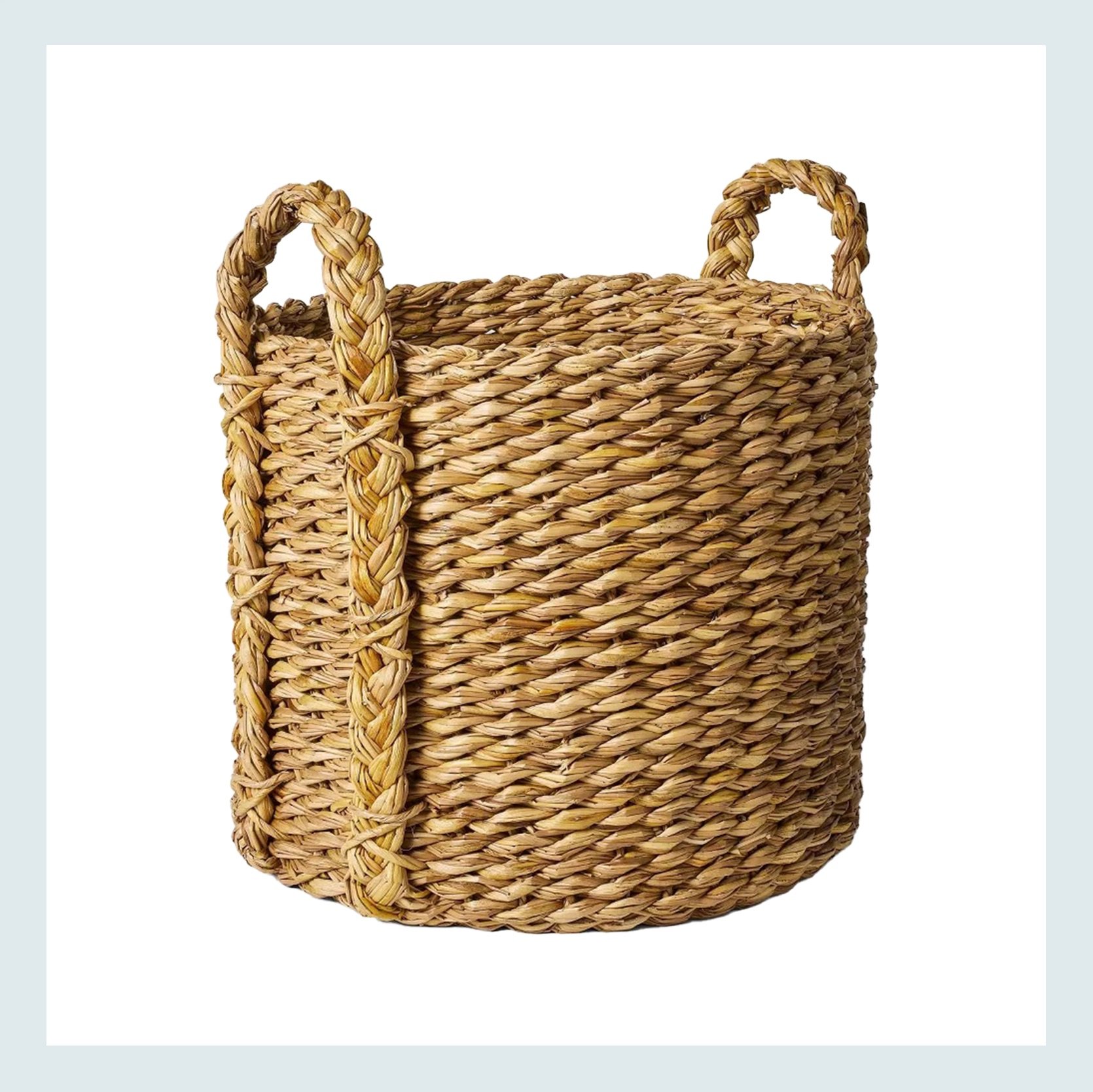Two more! But rectangles:) I love the handles and stripes of the braided water hyacinth basket, but I also realllly appreciate the lid on the rattan storage basket. You can’t go wrong.