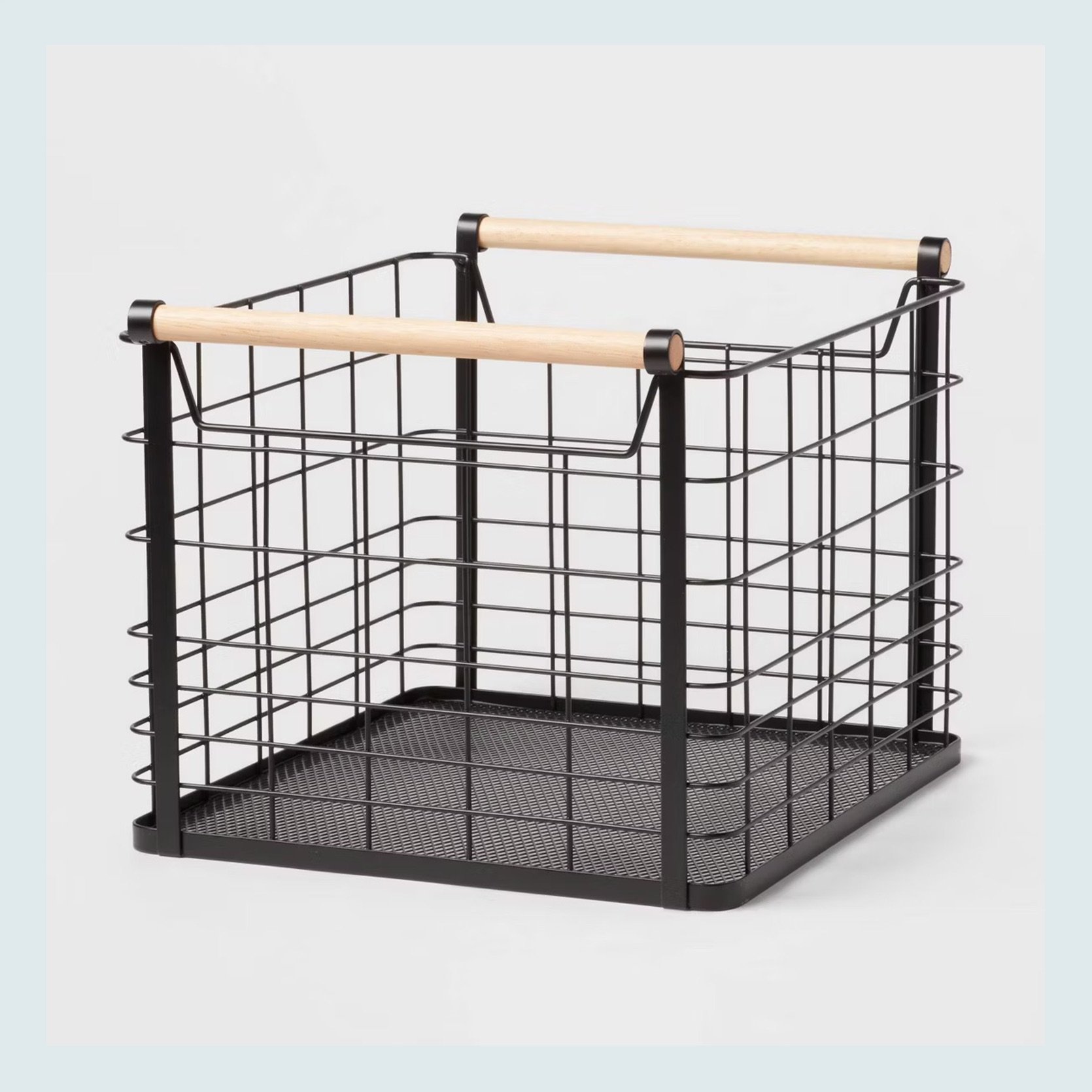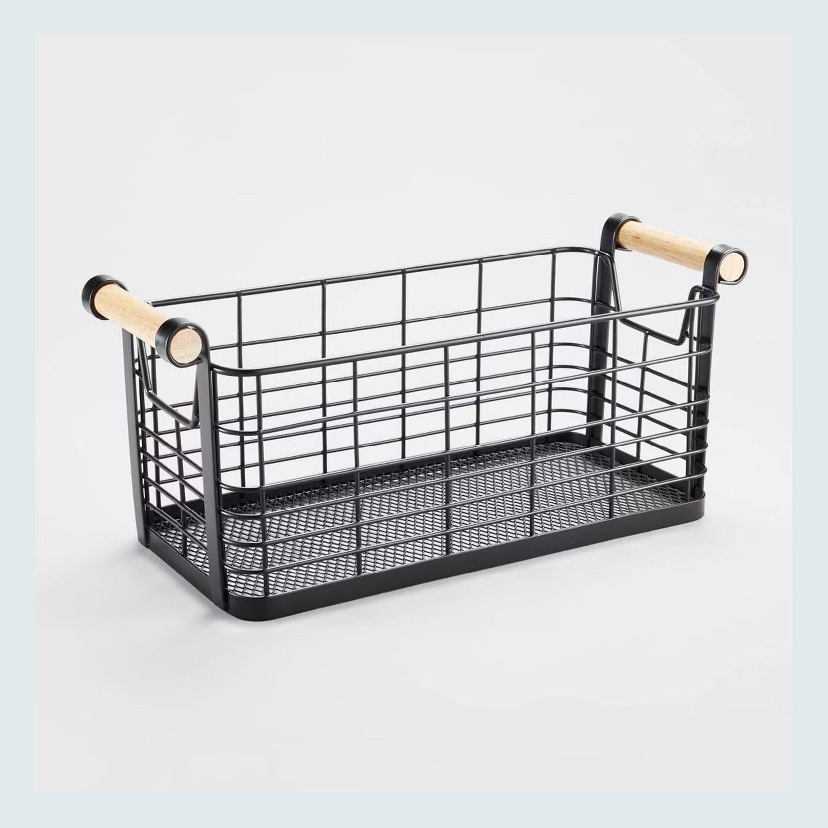 Wire Natural Wood Handles Milk Crate | Rectangular Wire Natural Wood Handles Basket