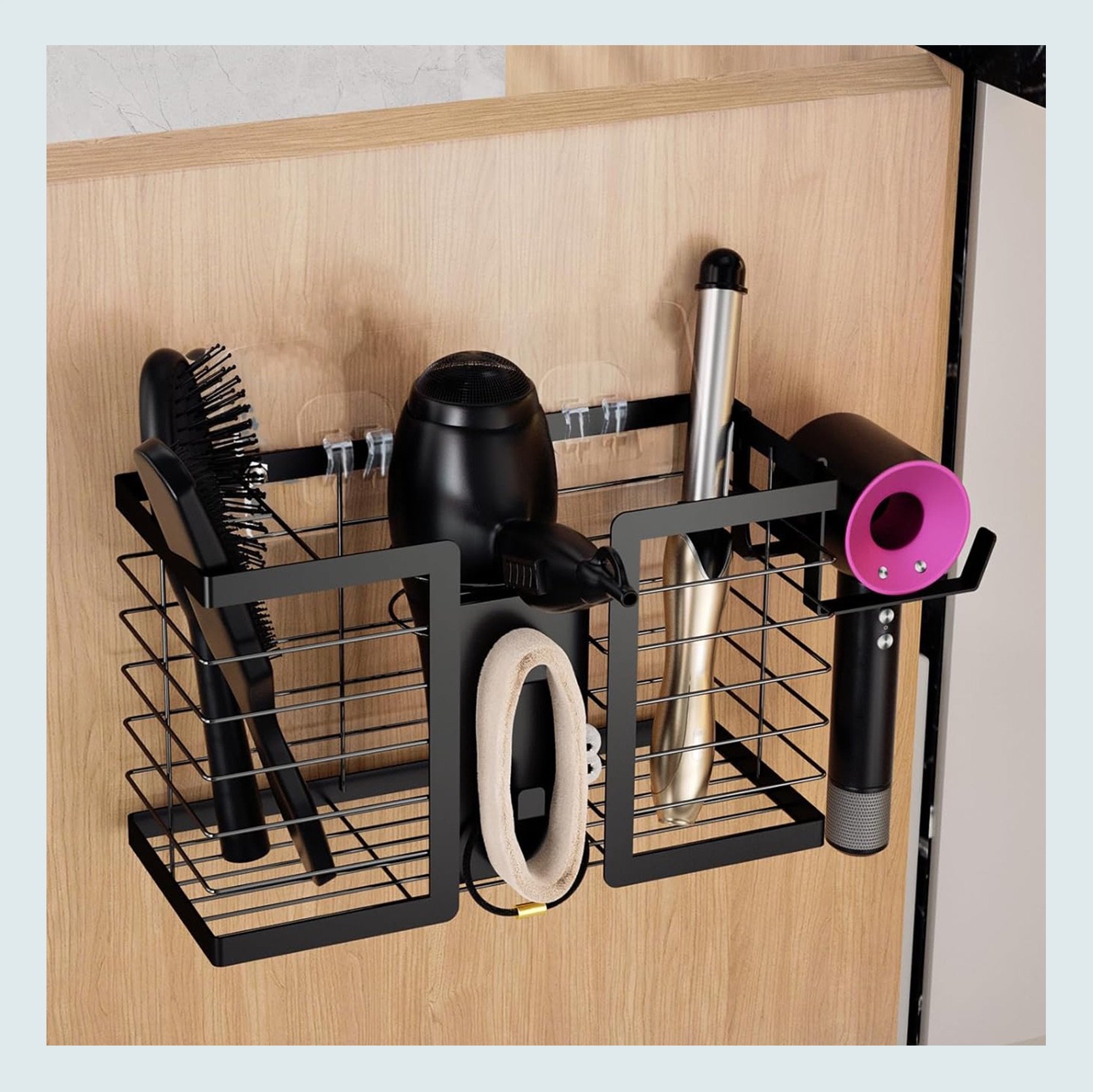 Bamboo Hair Tools Organizer | Wall Mount Hair Tool Organizer