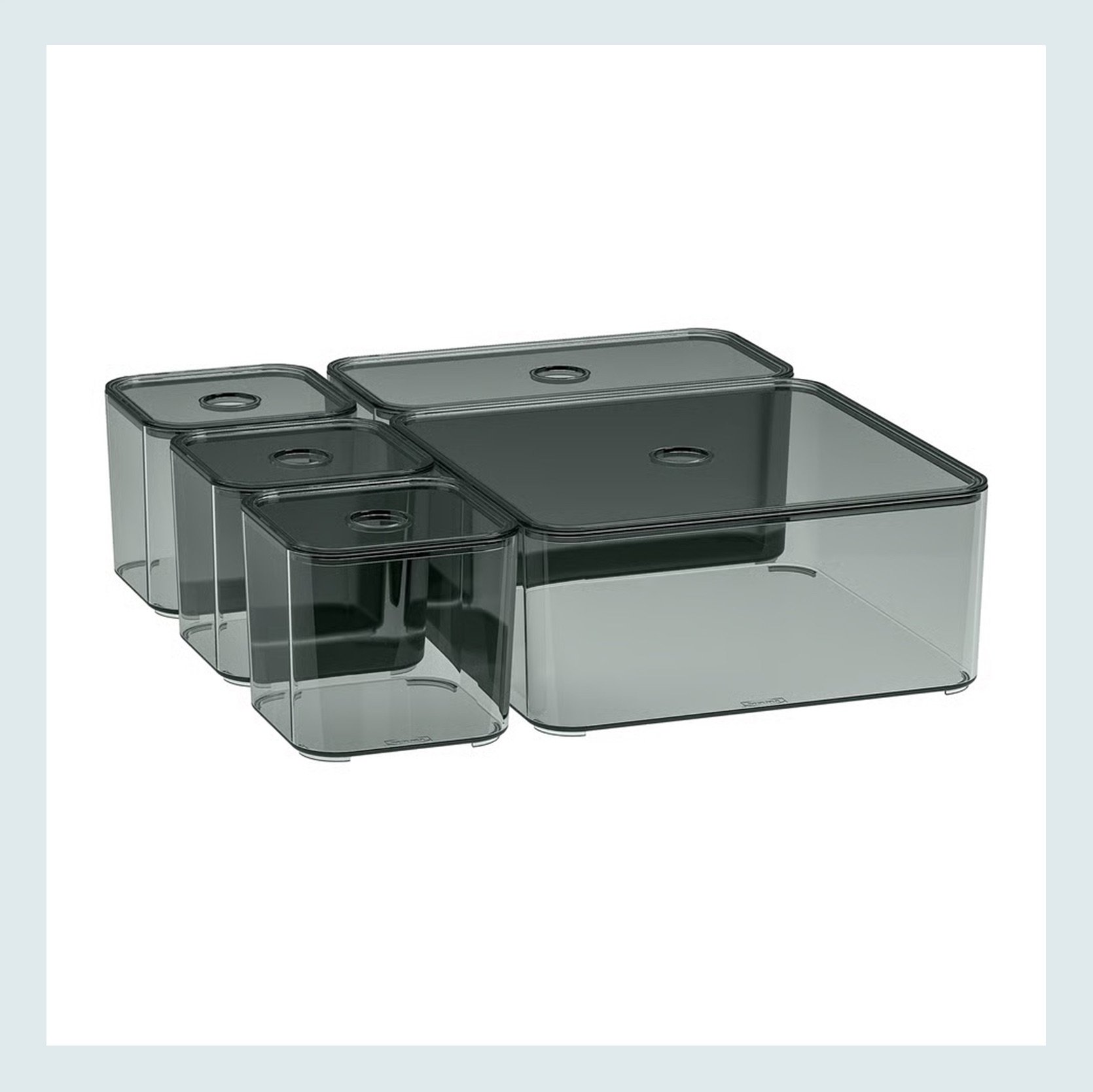 Maximizing counterspace and keeping all of our little bathroom things organized is a top priority for most of us, right?? IKEA has so many useful and pretty things, and these two products are just that. That two-tier counter shelf is simple and cute and would be a great skincare display:) It can also be great in a kitchen. Then maybe if you want something different than the standard plain, clear drawer or counter organizers, I LOVE these chic dark gray boxes as an alternative.