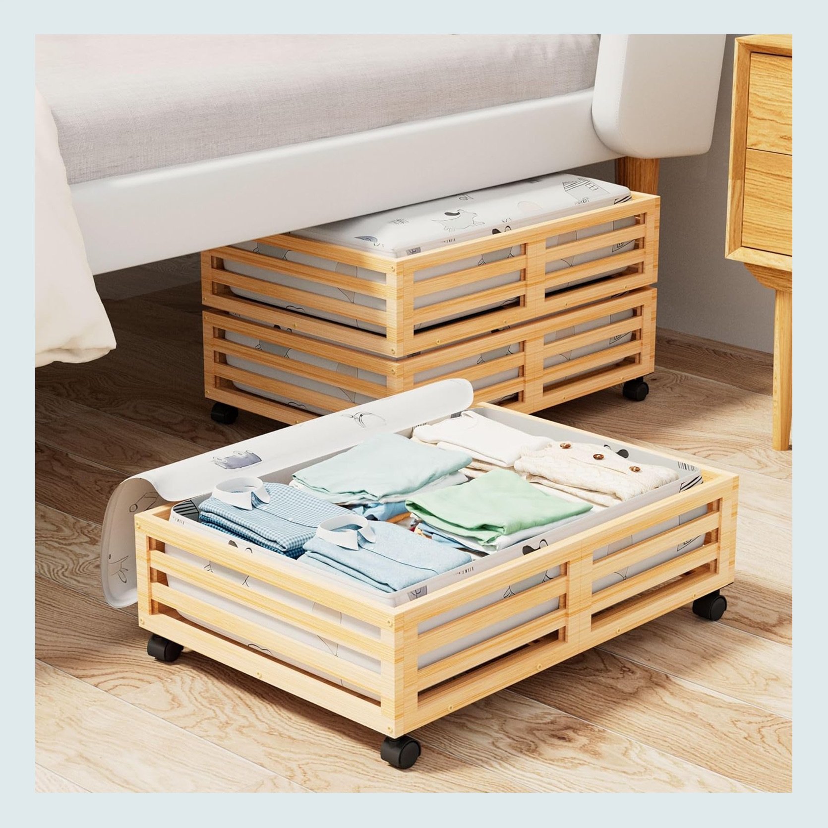 Lenia Underbed Storage Drawer (Pack of 2) | Bamboo Under Bed Storage Containers (Pack of 2)