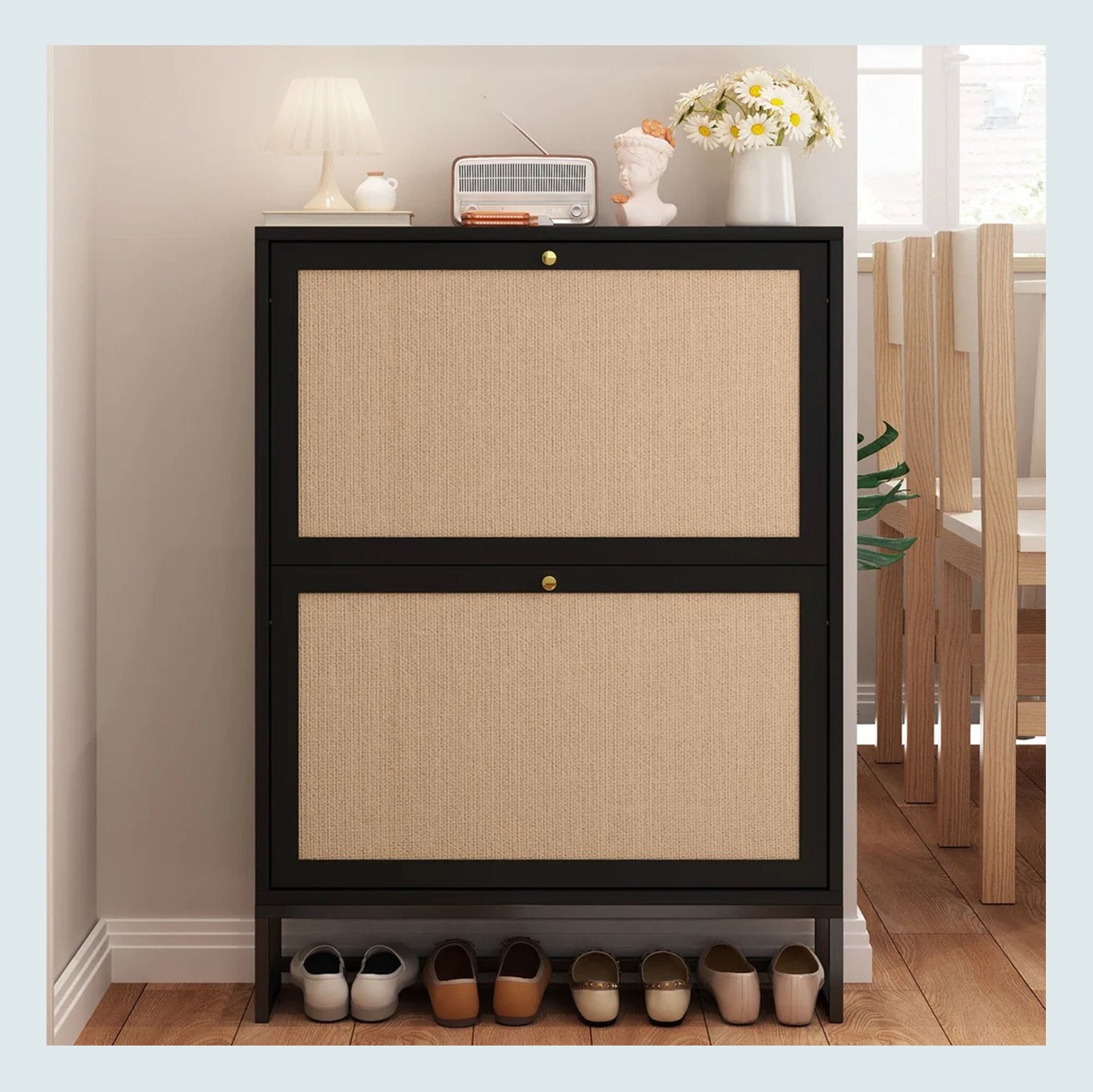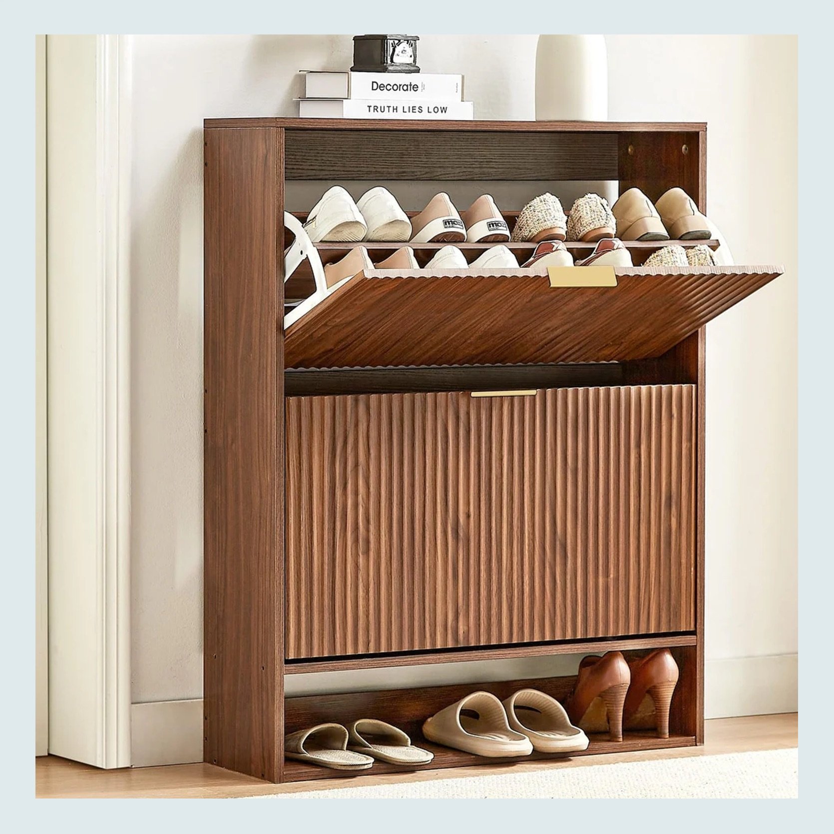 Fluted Hidden Shoe Storage Cabinet | Wood Shoes Storage Cabinet