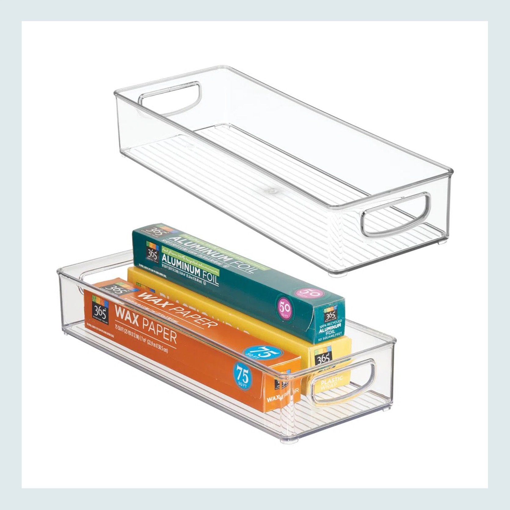 I also have these stackable utensil organizers in my silverware drawer, and they work great and still look new after a few years of use. I sadly don’t have this Ziplock bag organizer, but again, if you are the “decanting” type, it’s a nice addition to the removal of visual clutter in your drawers.