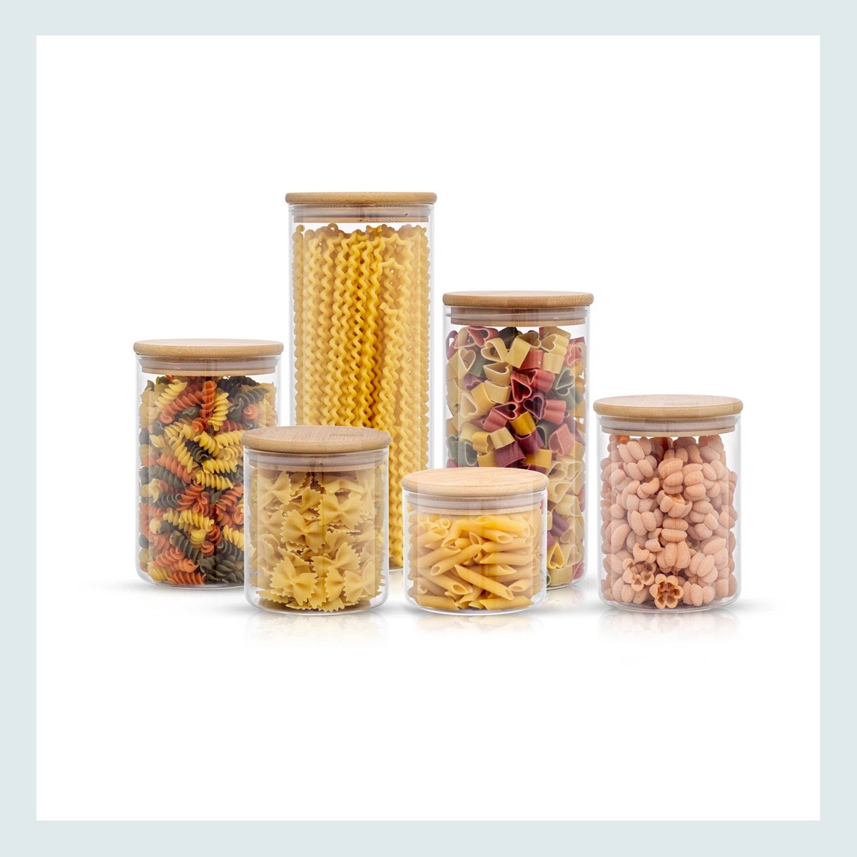 What better way to free up some cabinet space than to decant some of your dry goods in a beautiful canister?? Of course, this is not something anyone needs to do! Just an idea, and here to show you options we like. I have the glass storage jars, and since I don’t cook that much (which I’m REALLY working on this year), they’ve been really fun/pretty decor. Emily has the Weck jars in her pantry, and she loves them (and they come in so many sizes)