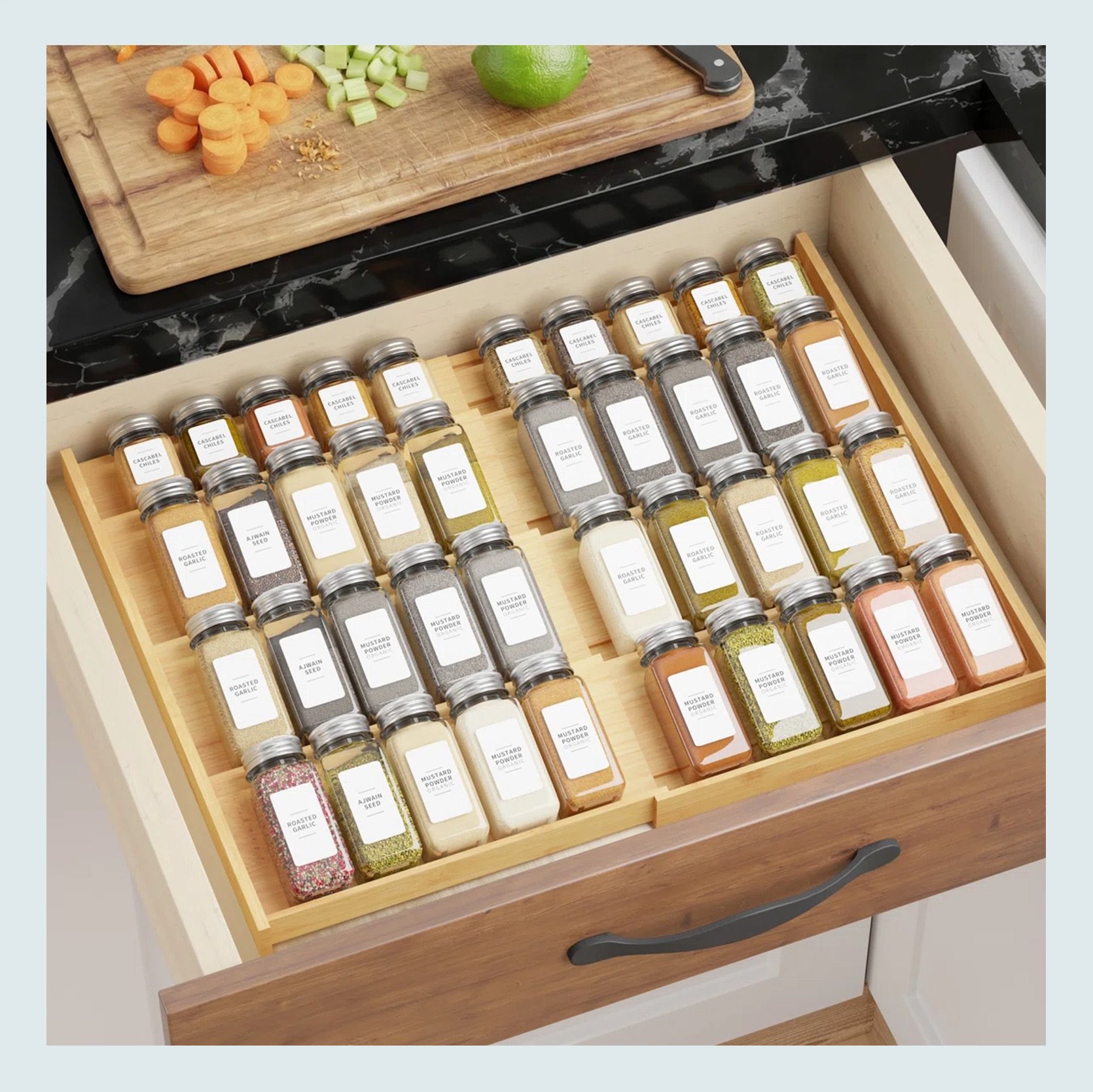 Again, no pressure from us to decant all of our spices (I only do a handful and then display them on my countertop), but if you want to, this huge set is under $35. But whether you want to decant or not, having a spice drawer organizer is another thing I dream of and will have space for one day!