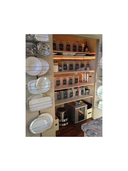 disasterscabinets and need to figure out how to organize them. I’m dubious that all of my crap will fit in those cute little shelving organizers, but it’s time to try.I’m also stumped by my pantry, which is basically a normal closet. I get how to organize food on 12″ shelves, but alas, my pantry is like 2.5′ wide and 2′ deep. Bins are better than nothing, but we still lose things in the depths, and it’s hard to find the specific canned food you want. Any suggestions for that? Maybe I just need a lot of risers…?