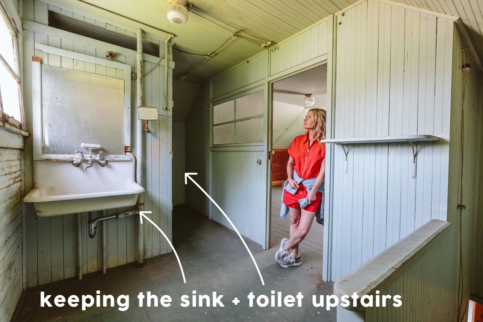 Going through this exercise of potential future uses also helped us make the decision to keep the toilet and sink upstairs. Originally, we thought we’d keep it simple with the bathroom downstairs and nix the one upstairs, which wouldn’t require the same amount of permitting because we’d just be swapping “one for one” (not adding). There are often sewer consequences when you add more water/toilets. But we already had to upgrade our sewer to be basically the largest one possible when we redid our house, so while this does require additional permitting, we think having a powder room upstairs is important, should anyone ever want to sleep up there. We have the space and it’s directly above the kitchen, so plumbing it isn’t an issue (the line is already there, though unsure if it will be used). And hell, upgrading the sewer all the way to the street was so expensive that I at least want to get the use out of it 🙂