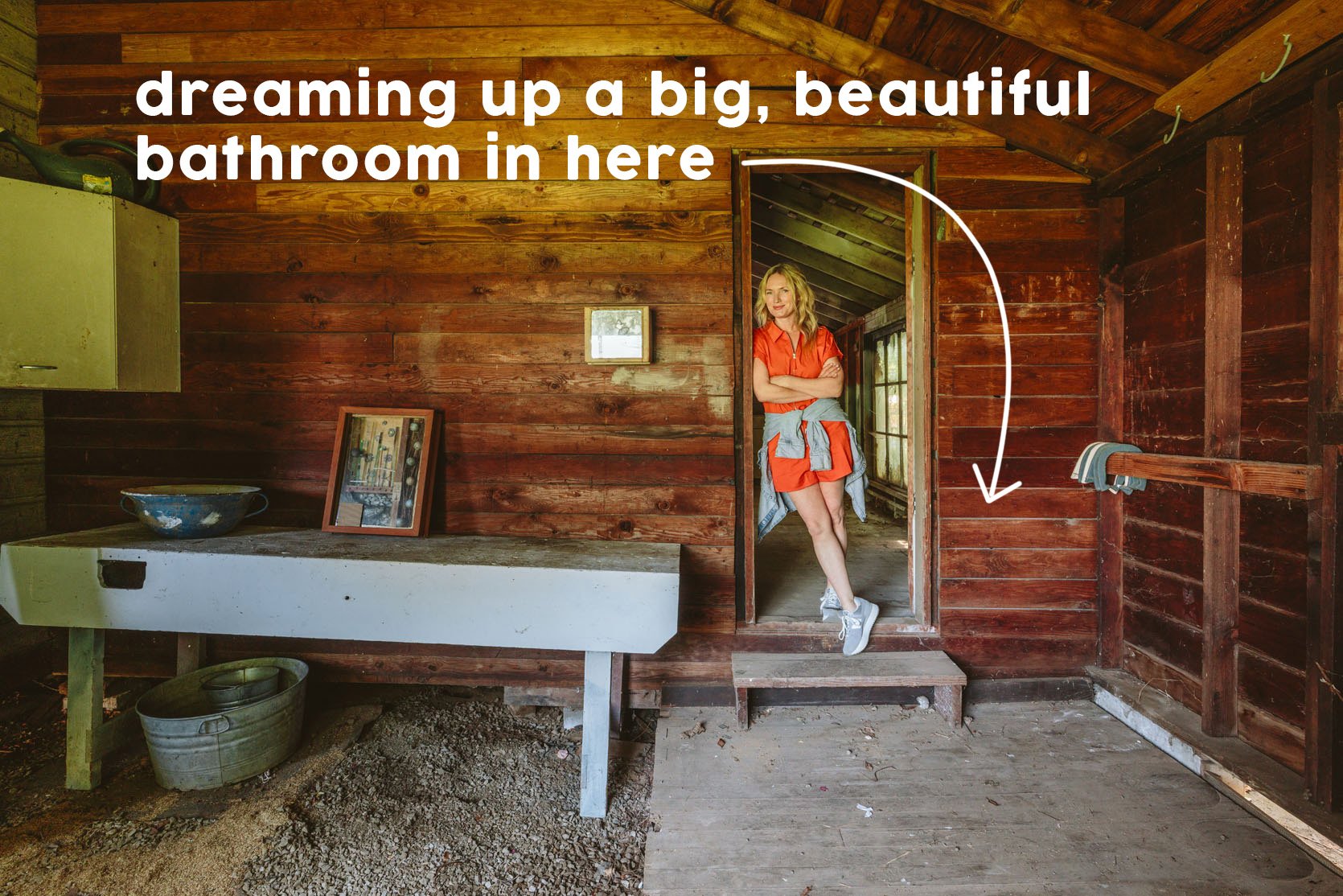 Brian was concerned that the bathroom would be too far away from the main area, but I’m not at all. People will figure it out. And I love that it’s going to have a door to the outside because we have SO MANY massive family/neighborhood/school events here, and having a dedicated party bathroom so that people don’t have to come inside the house is HUGE.