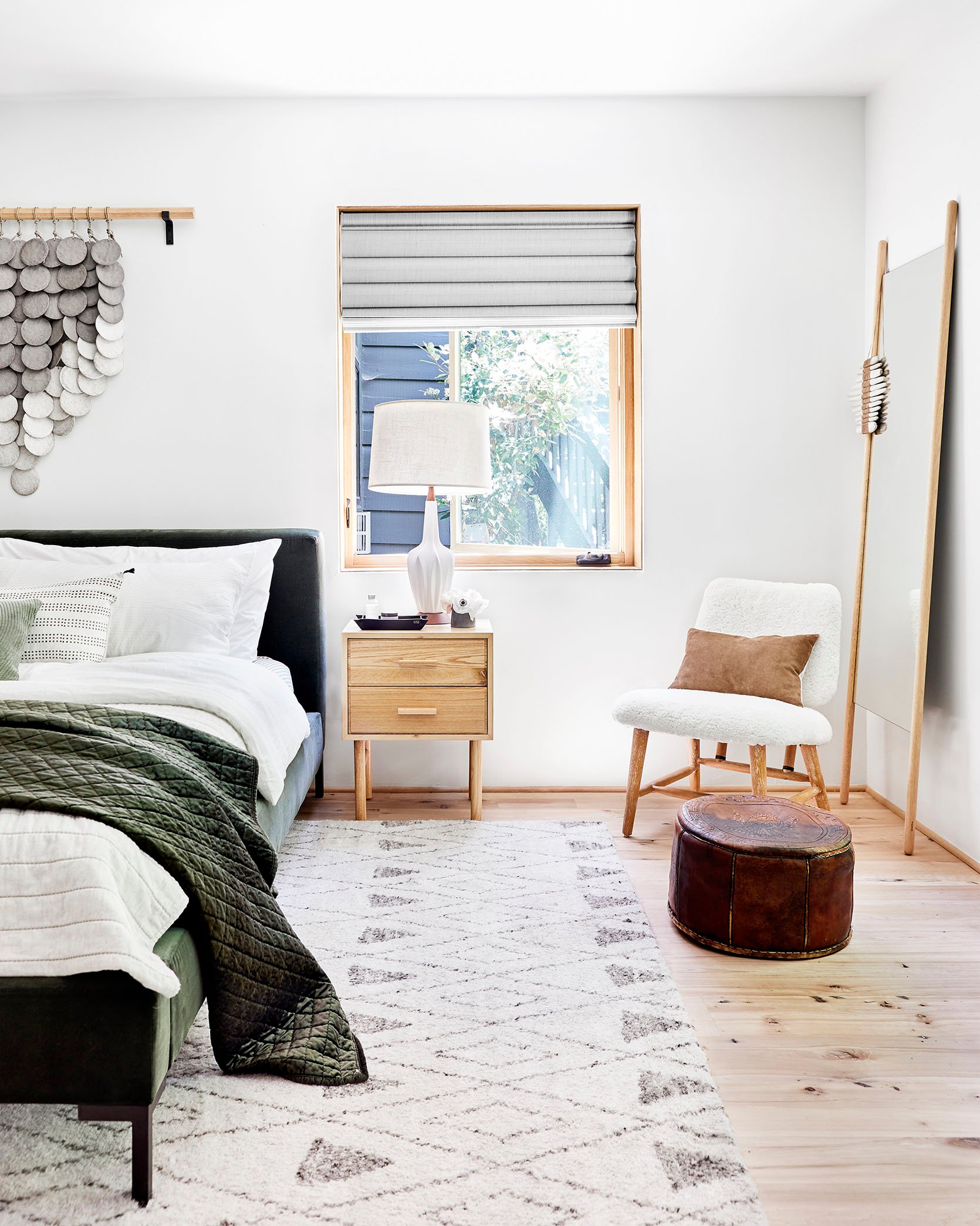 An easy color that still feels neutral is, of course, green. Especially an olive-toned green. This faux sherpa cutie is a great and really affordable option to add a punch of color that won’t overwhelm your room. But if you want more of a lounger (that also swivels AND comes with an ottoman!), this leather one is perfect. Plus, all of the reviews are great.