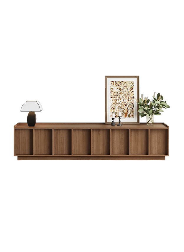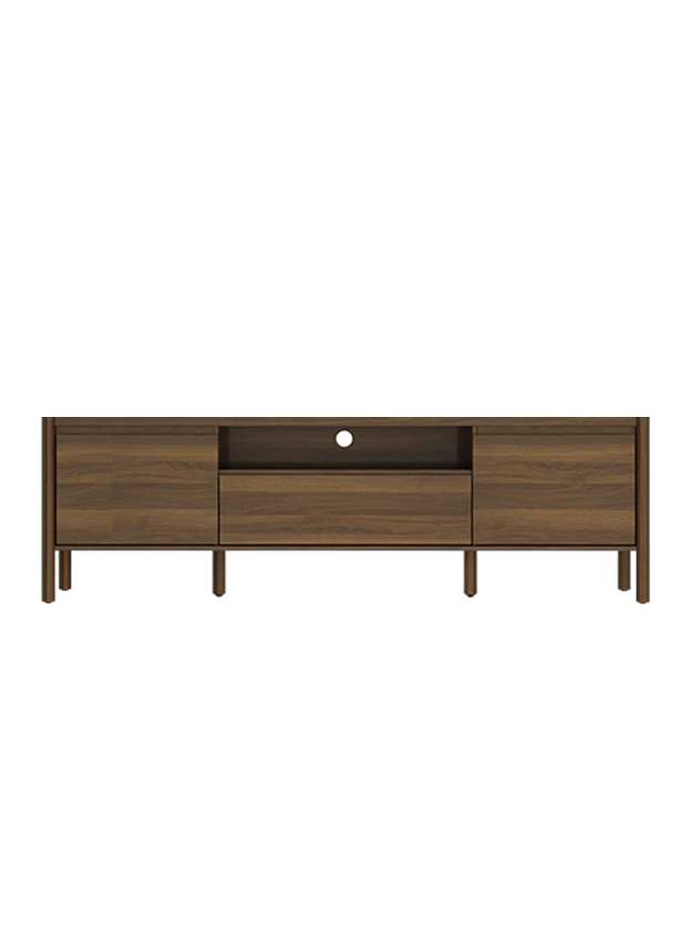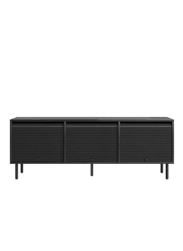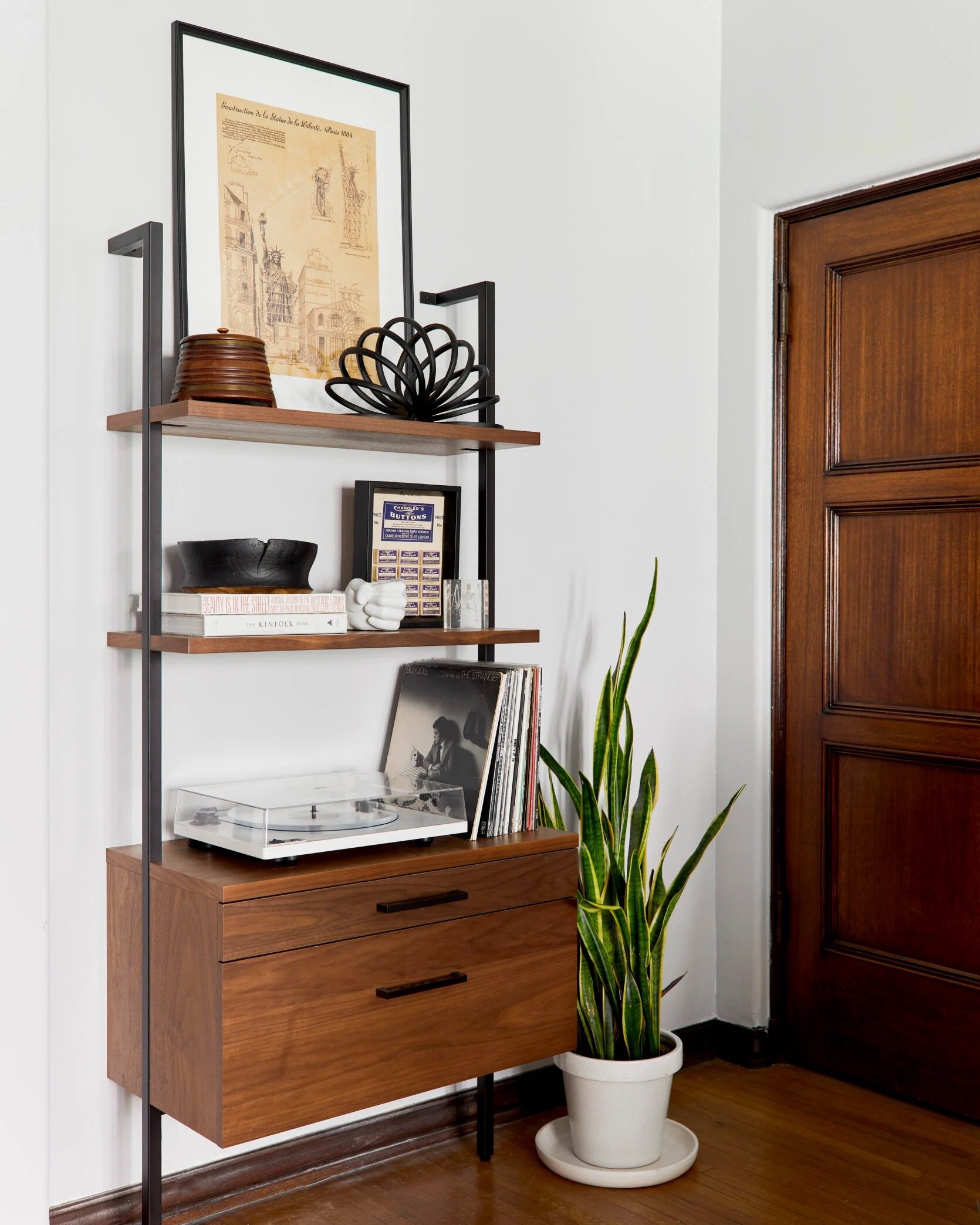 Getting a large piece like this for under $250 is pretty awesome. They all have that ever-important visual texture and lots of storage. The light wood one is great if you want a decent amount of open and closed storage, the black one is ideal if you don’t, and the walnut one is in between!