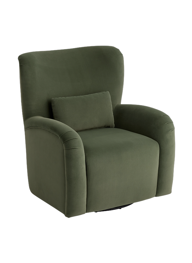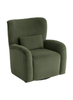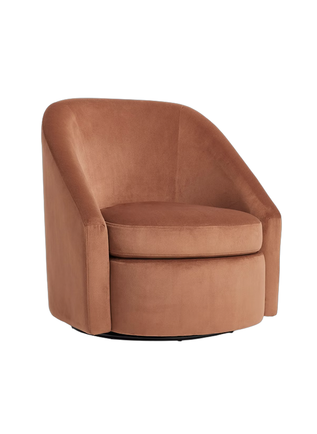 The pricing here gets a bit higher, but we think they could be worth it as long as it’s within your budget. That brown chair has been around for a minute, but we still love the traditional twist it would give to a room. Those arms are sick. Then, for a cozy swivel, with a color punch, how good is that modern wingback??