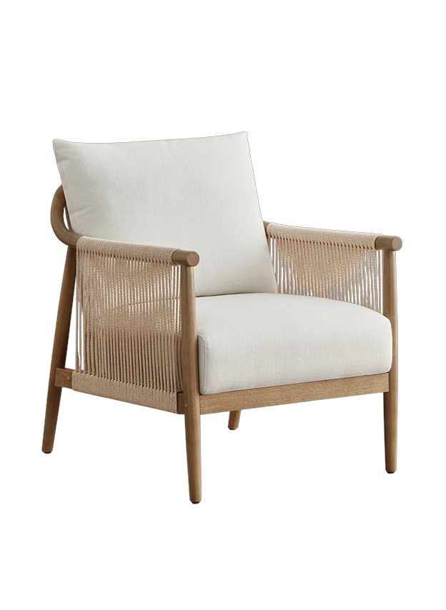 Two chairs for our light-toned neutral colors! Ugh, the elegance of that slope arm glider is so good. But for some fun texture, the woven detail on the other chair is fun without being “too much”. Organic modern style, delivered.