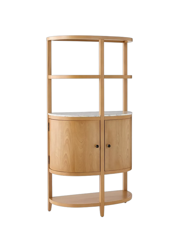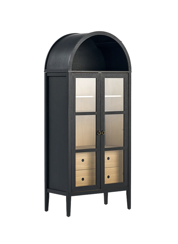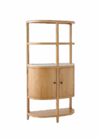 We have a real soft spot for tambour doors, and the brown cabinet uses it perfectly. A great amount of open storage and just enough closed with that beautiful material. The small cabinet is one we’ve also seen in person, and it’s as cute as you’d imagine it to be. This arched cabinet, though…it’s incredible. It’s giving deVOL, and those drawers on the inside make it look so expensive.
