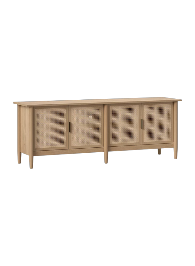 These prices are only slightly higher, but boy, are they pieces good. The simplicity yet chunkiness of the Leif media unit is so pretty. Then we can’t get over the fun detail of the mid-century one. Looks much more expensive than it is. Finally, here’s another pretty caned door option! The tone is softer than the less expensive one, and we love the legs.